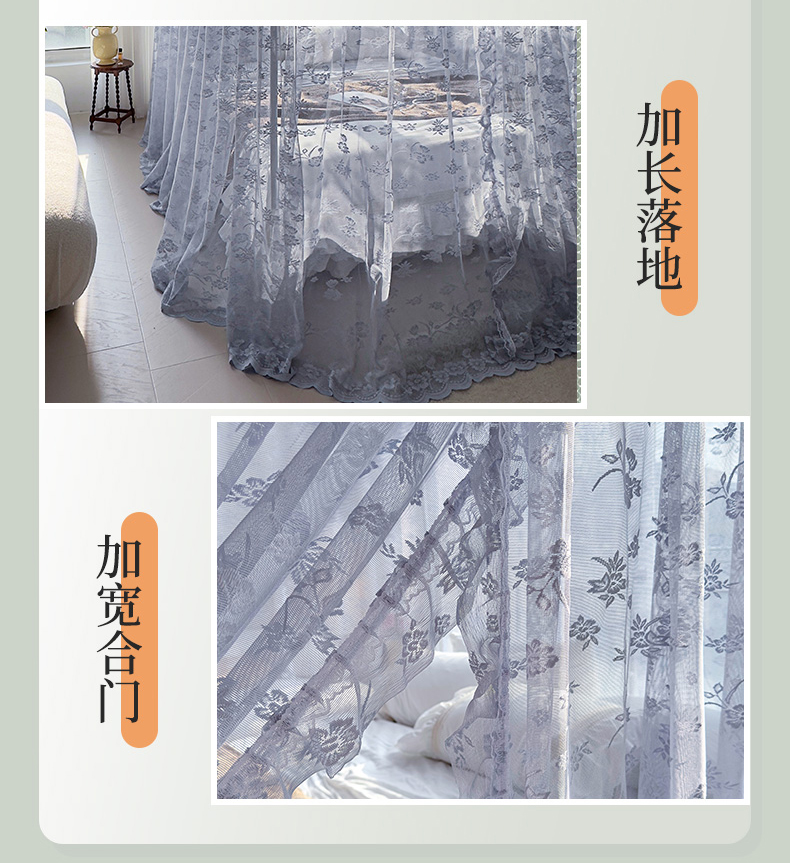 商品名称:夏彩 2025新款豪华宫廷蕾丝睡帐-88599 88599-蓝灰色