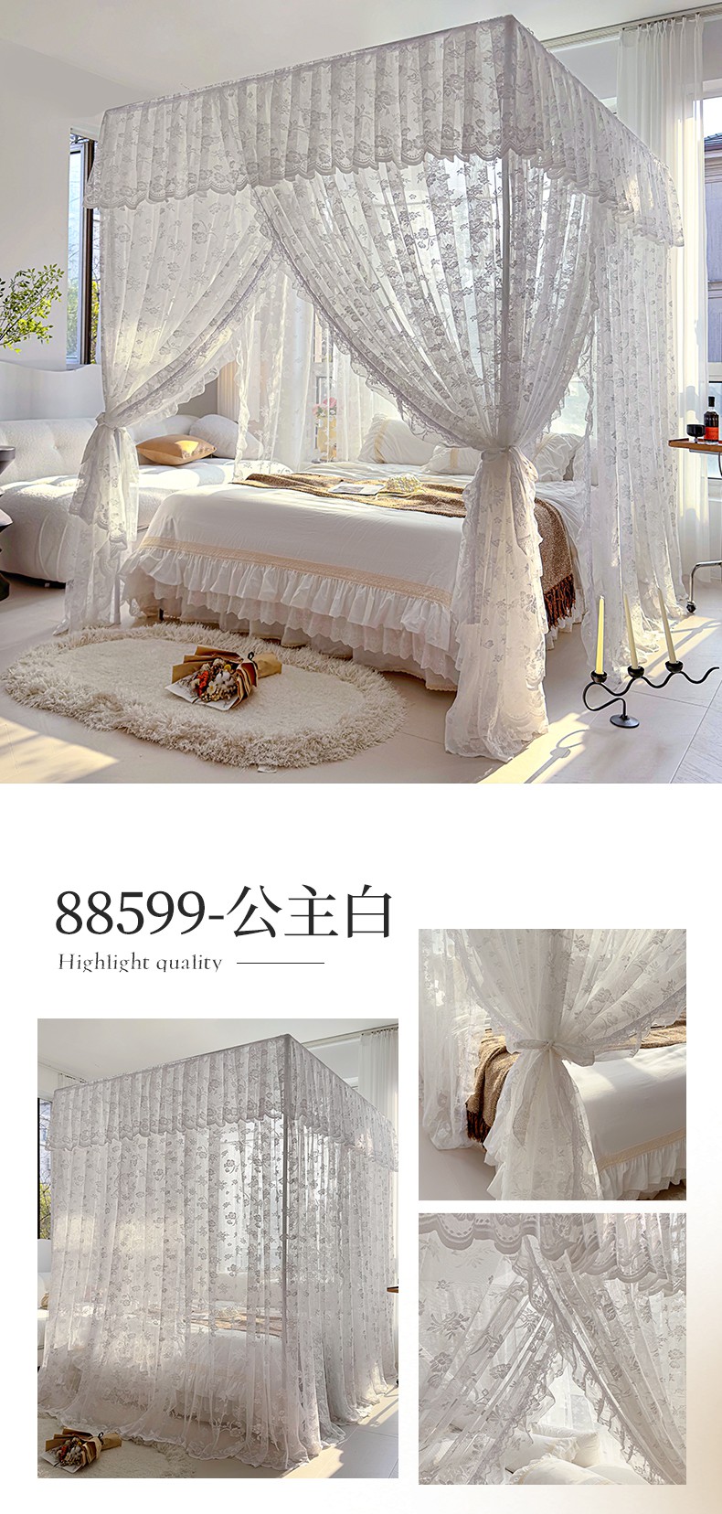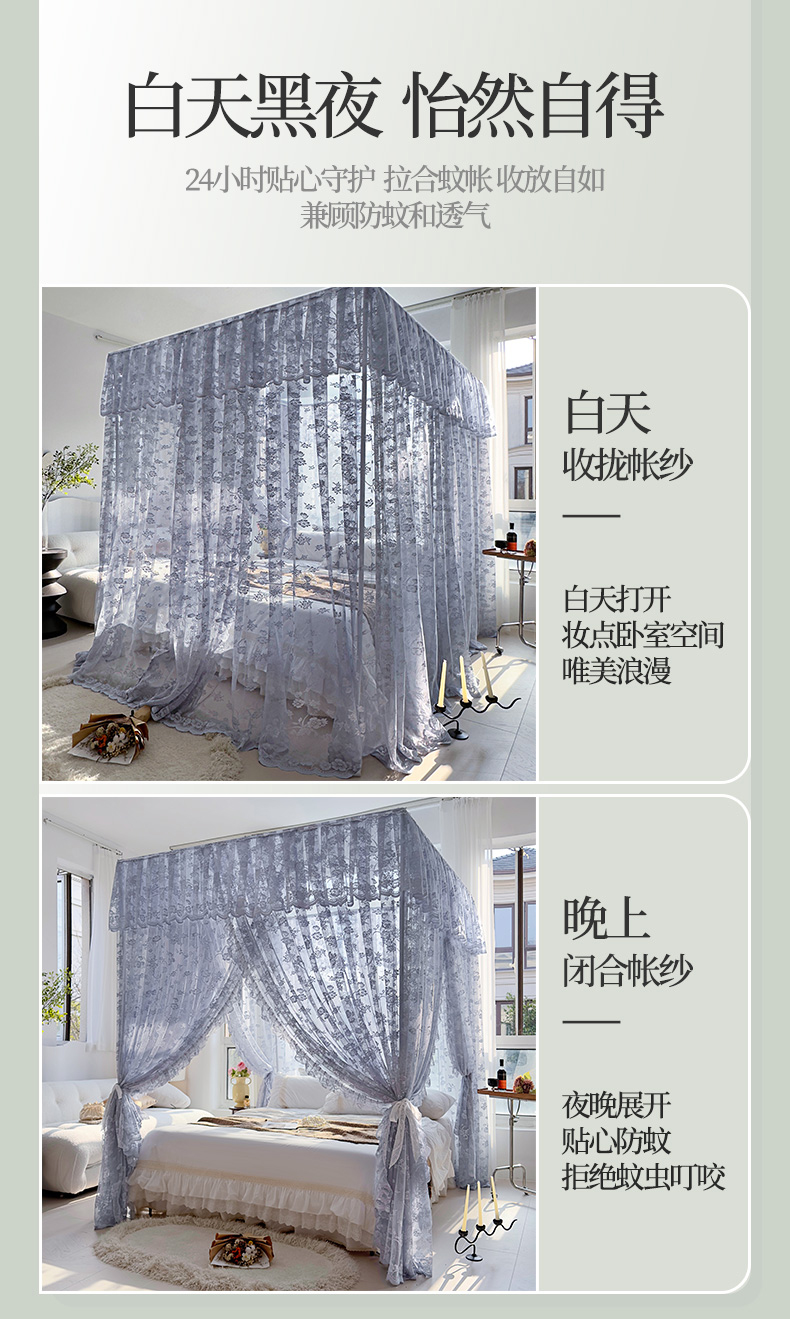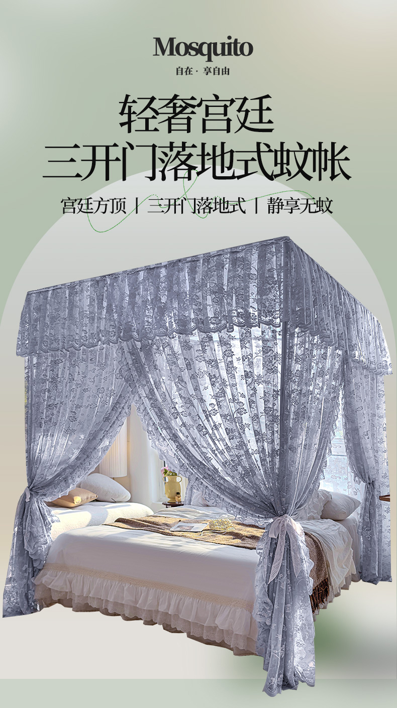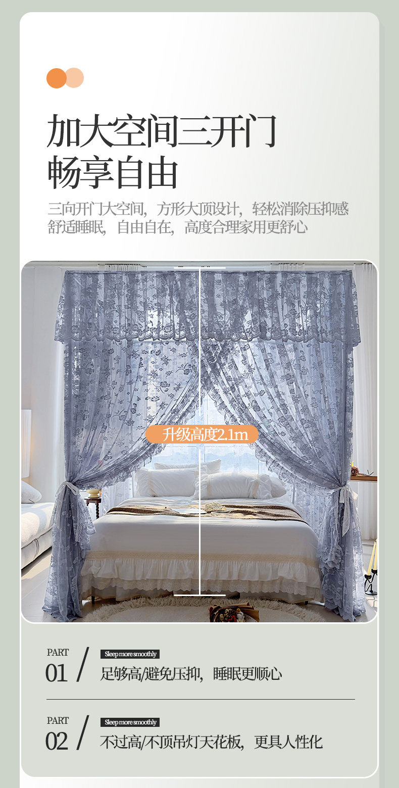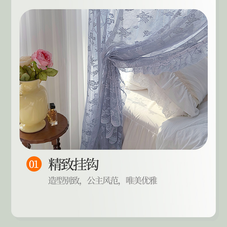 (总)夏彩 2025新款豪华宫廷蕾丝睡帐-88599,88599-公主白,88599-公主粉,88599-公主玉,88599-蓝灰色