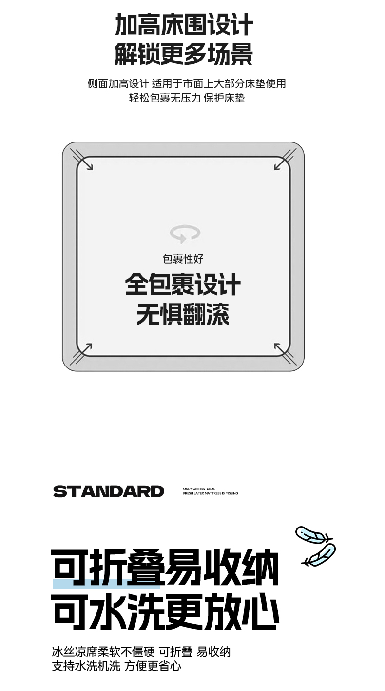 欧邦 2025春夏新款5A抗菌华夫格凉感冰豆床笠款凉席席子-小熊系列 小熊-水绿