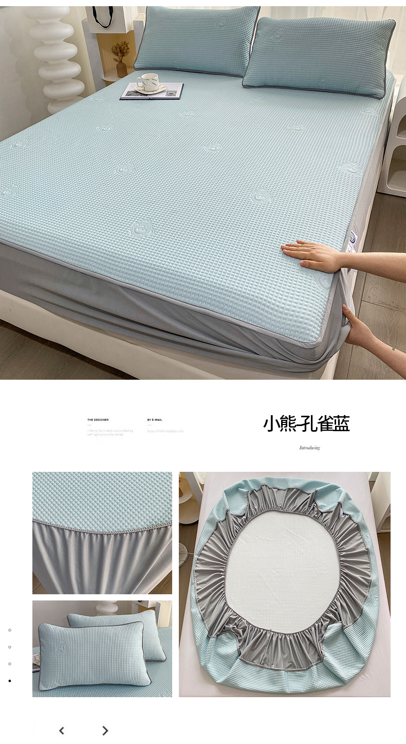 商品名称:欧邦 2025春夏新款5A抗菌华夫格凉感冰豆床笠款凉席席子-小熊系列 小熊-水绿