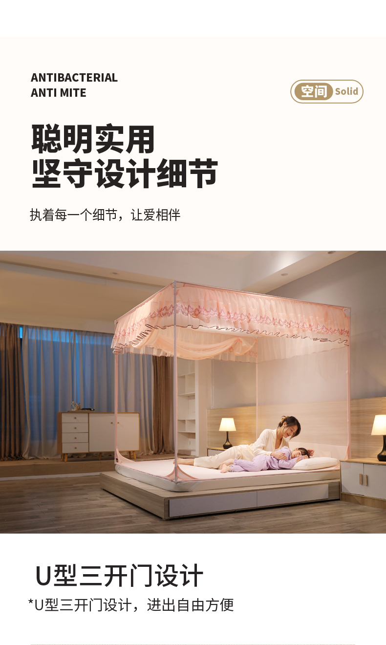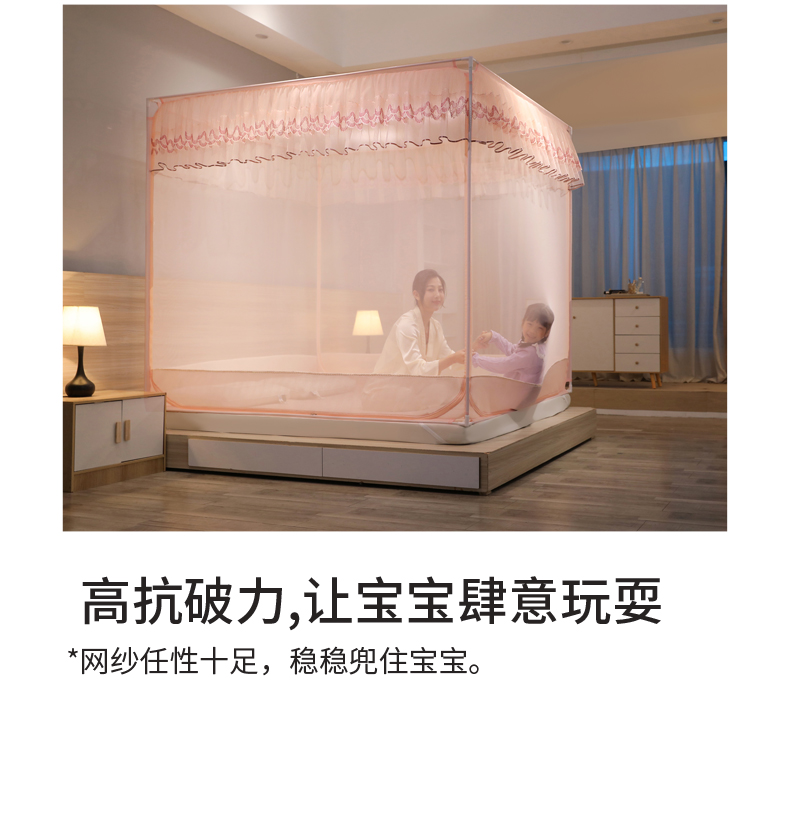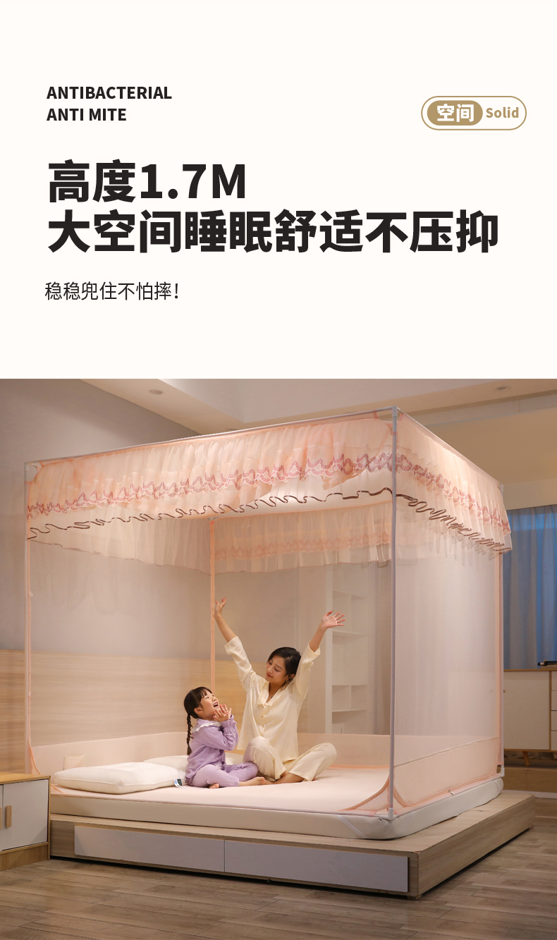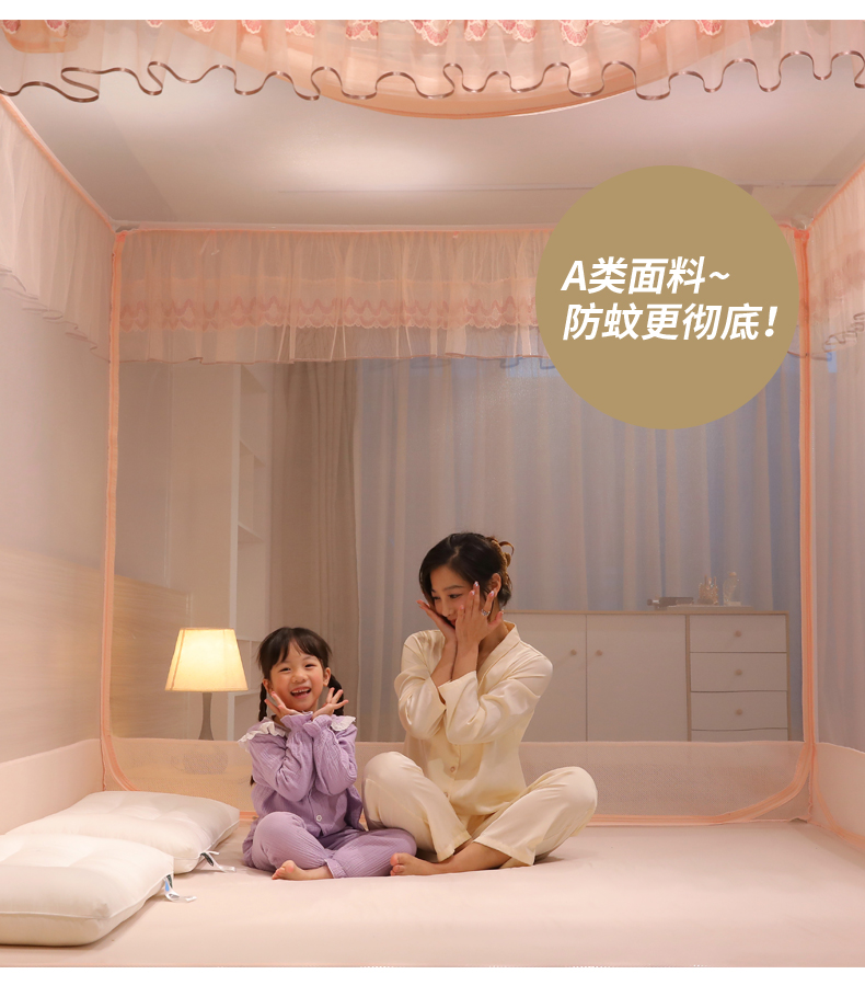 (总)夏彩 2025新款浪漫唯美T+U床笠式坐床外穿防摔蚊帐-88610,886610冰海蓝,886610极光白,886610浅粉玉,886610浅水蓝,886610蔷薇粉,886610杏仁黄,886610雅士灰