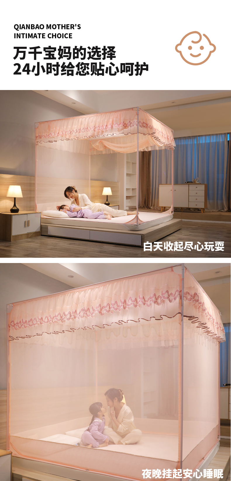 (总)夏彩 2025新款五面保暖亲肤面料坐床拉链四季款蚊帐-88632,星愿熊,拉贝贝,羽飞舞,支架,保暖顶-灰色,保暖顶-粉色,保暖顶-绿色