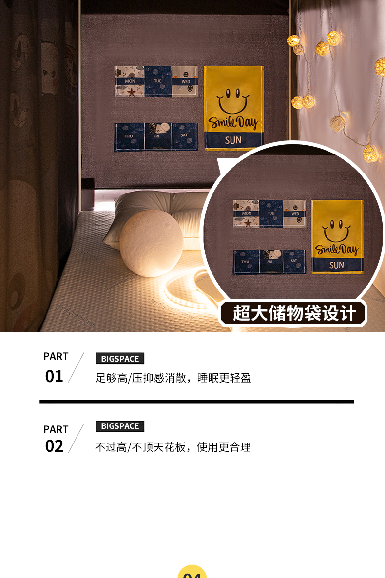 0.9m上铺(带靠墙帘)免安装 | ¥115.00 |