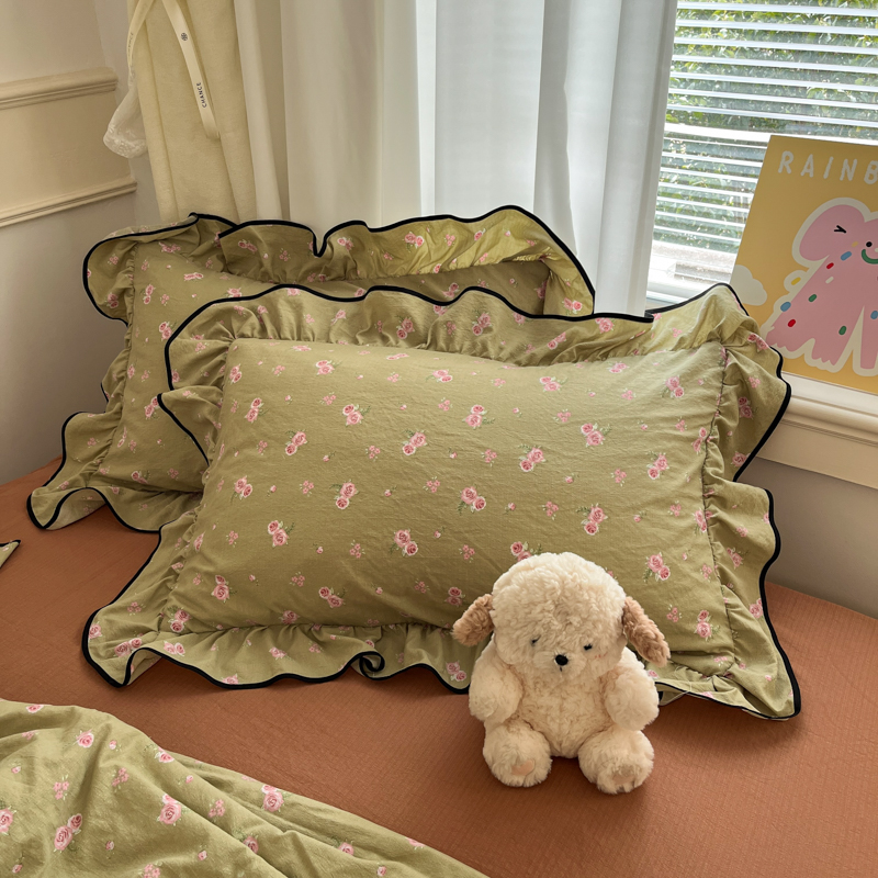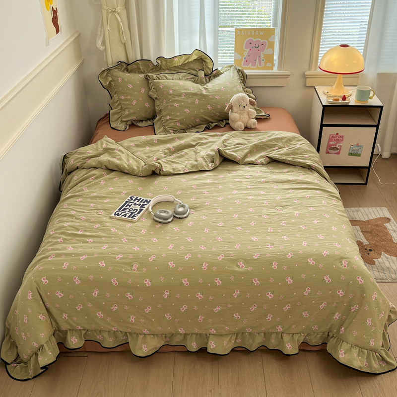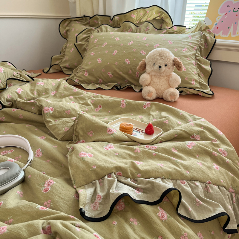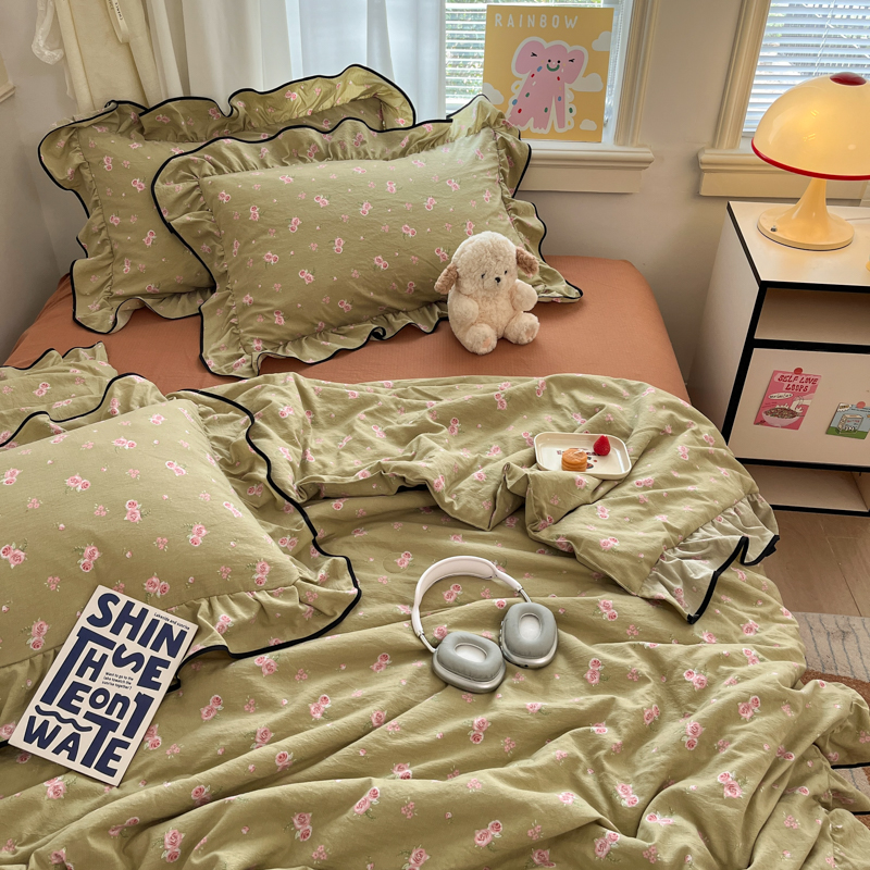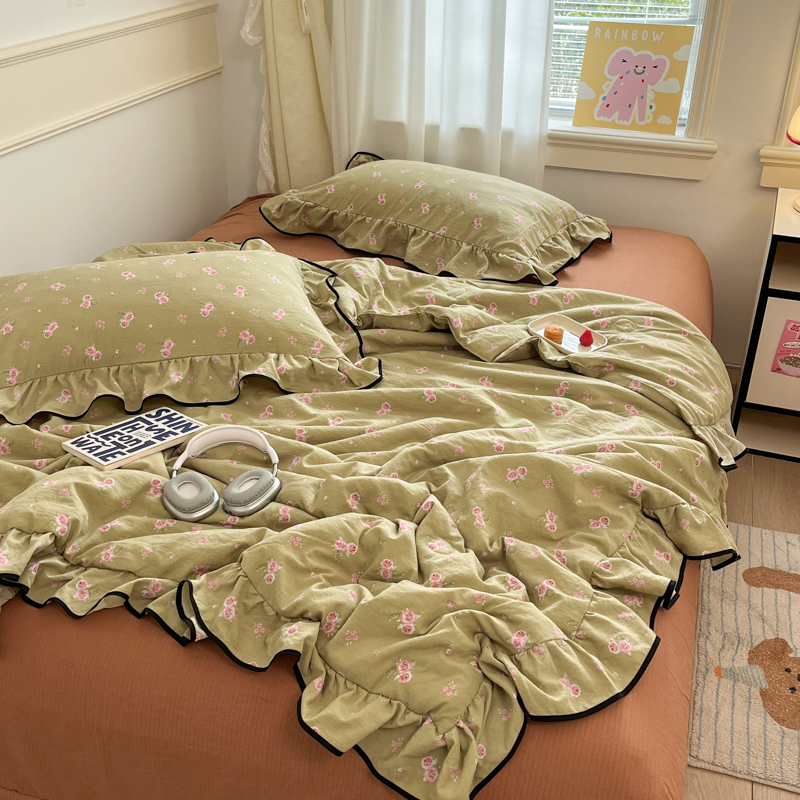(总)欧尚 2026新款花边床盖四件套,春和,花束,花野,灰樱桃,咖爱心,咖豹纹,咖啡小猫,梨花落,绿爱心,梦境,木马,奶油波点,暖橘枝,暖心,人间草木,田园兔,小女孩,星愿,摇摇马,紫爱心,紫豹纹,紫苏