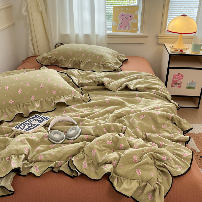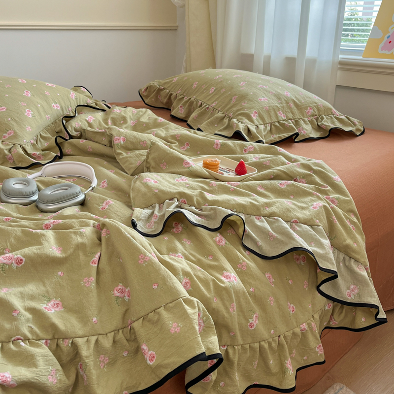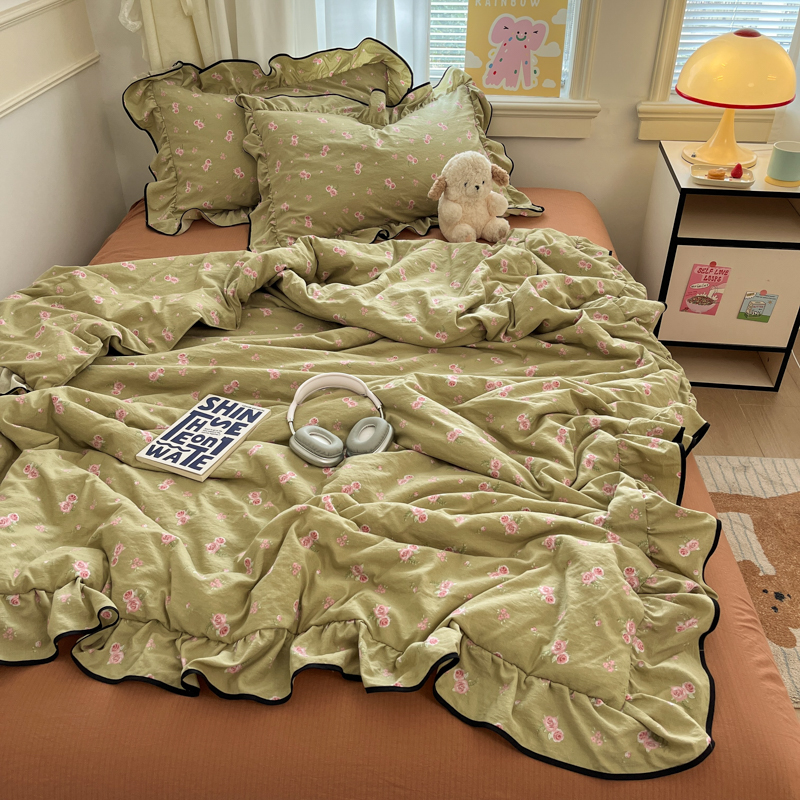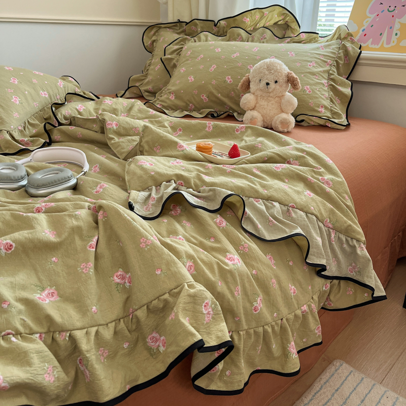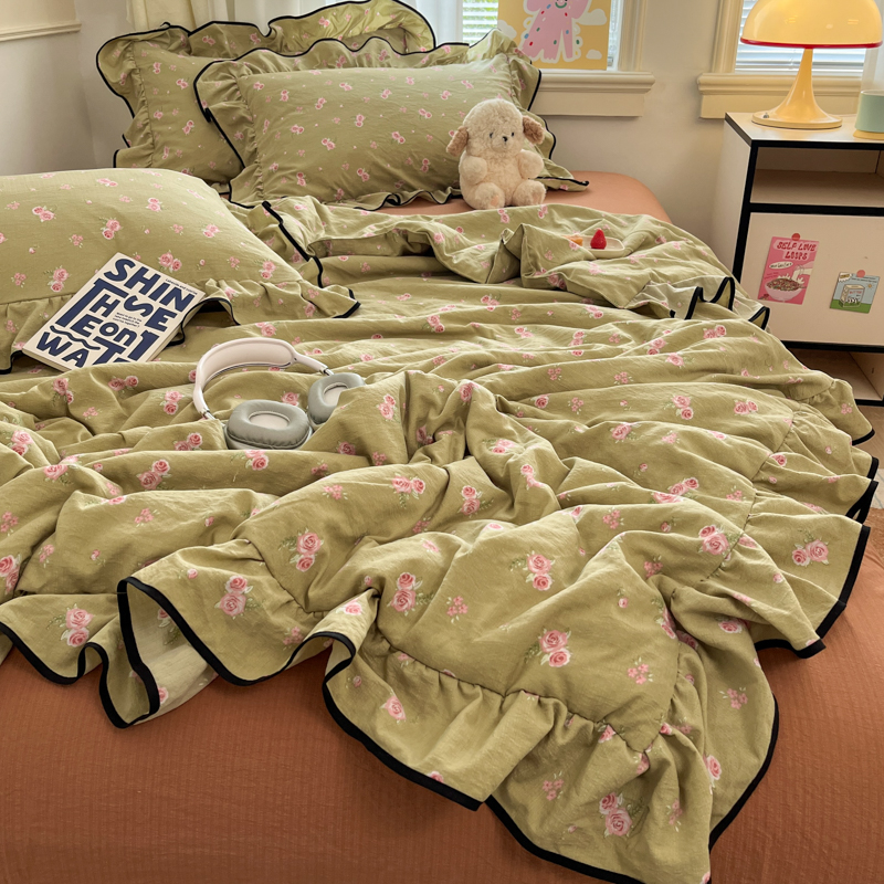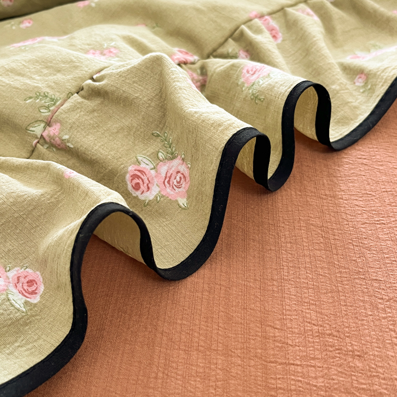 商品名称:欧尚 2025新款细黑边夏被床单床盖三件套 玫瑰恋人