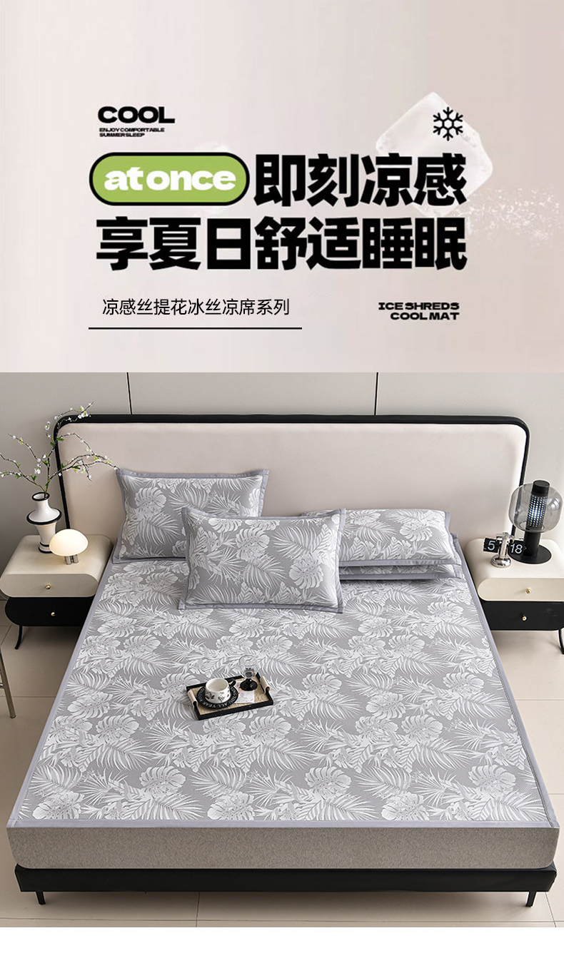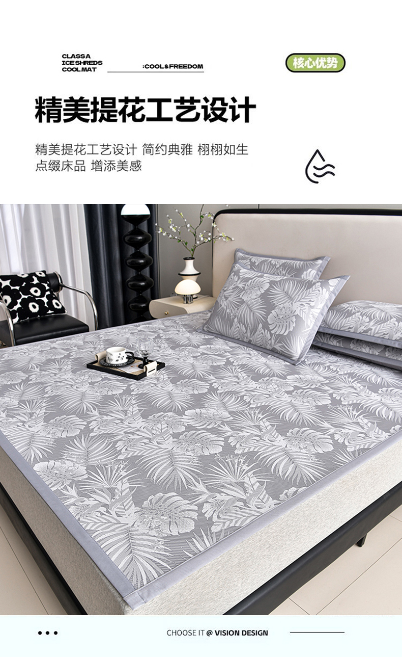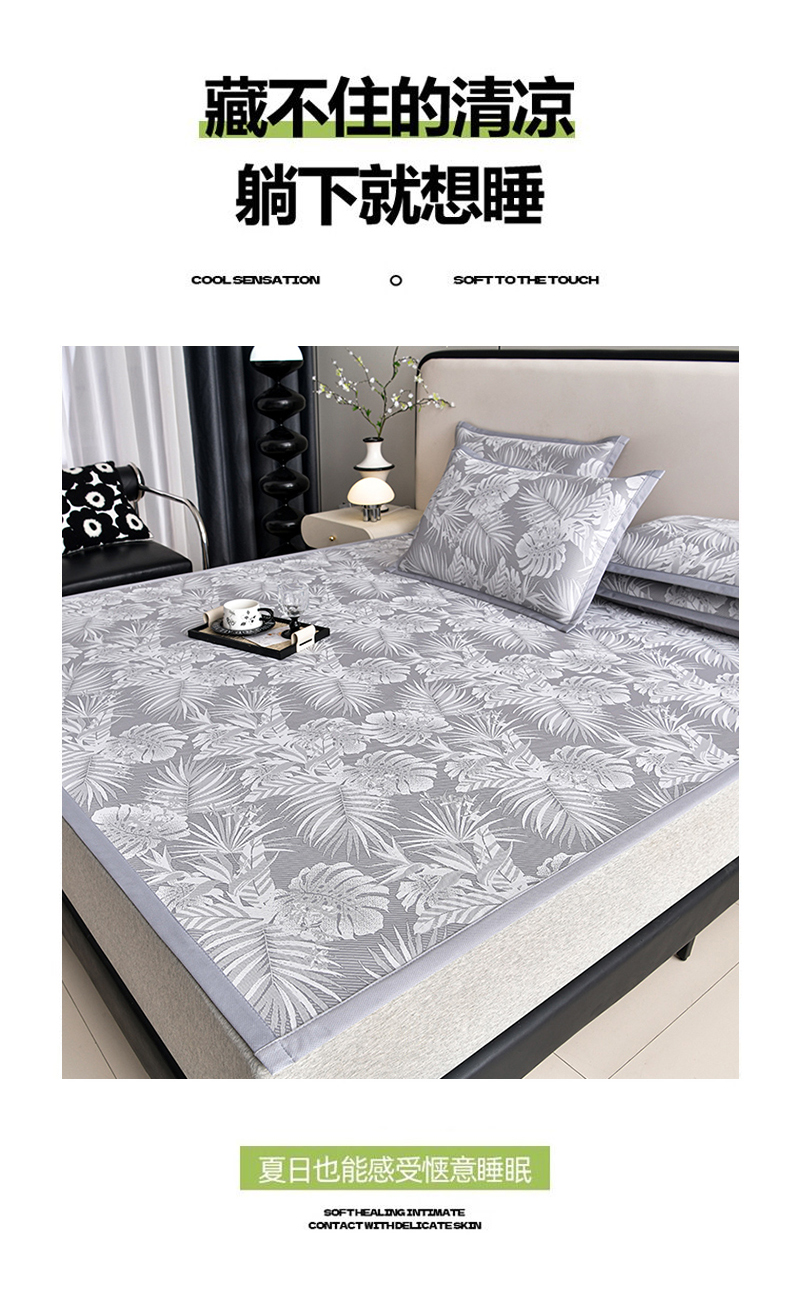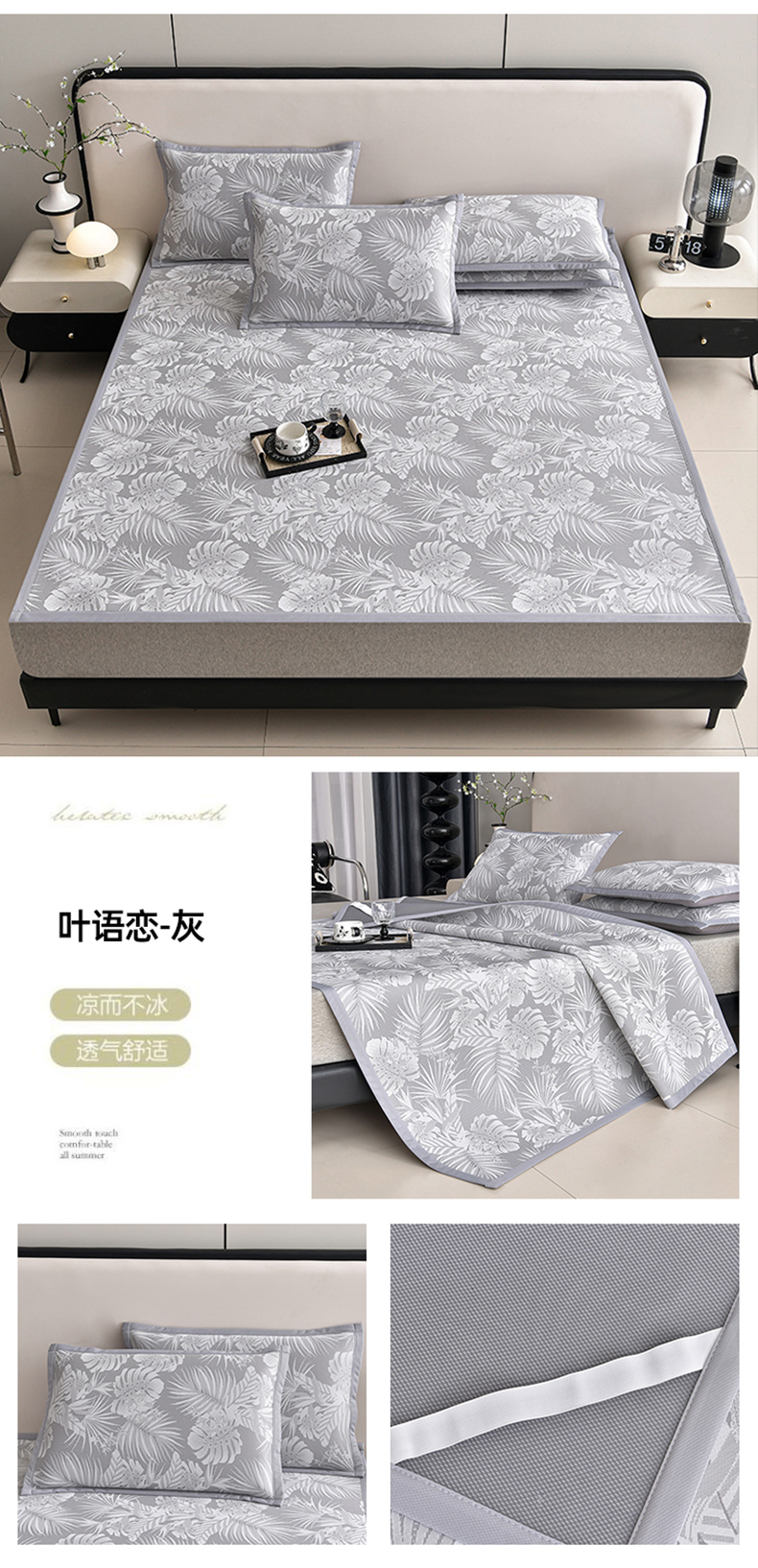 当前位置: 91家纺网 > 商品网购 > 床上用品 > 凉席 > 冰丝席 > 芯诗曼家纺 2025新款三明治凉感丝提花冰丝席凉席 叶语恋-灰床席款