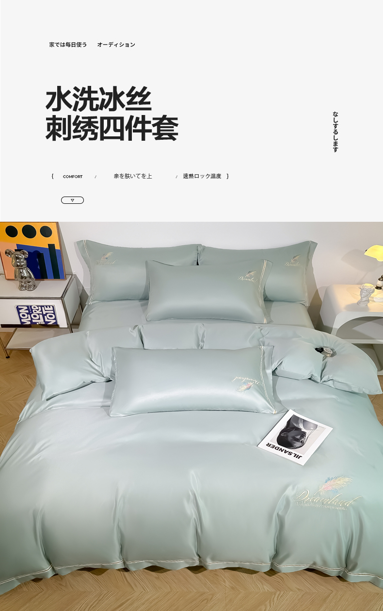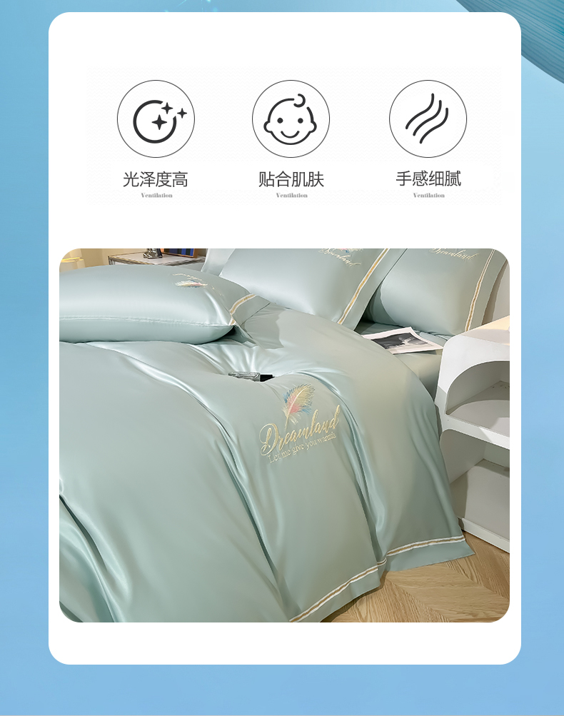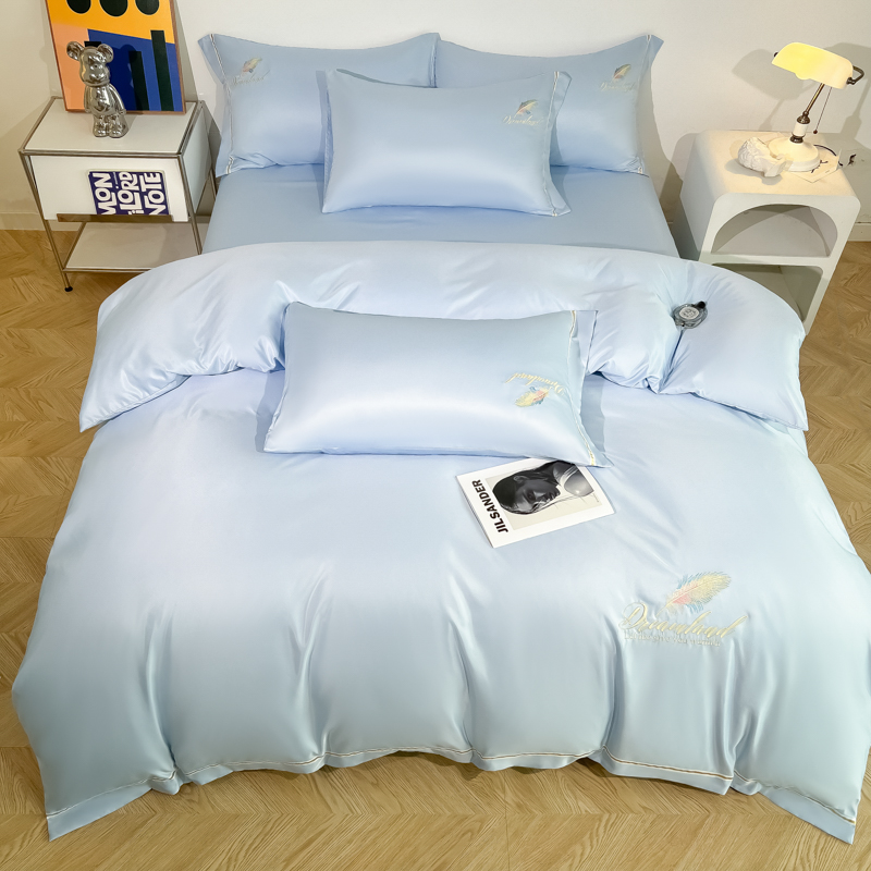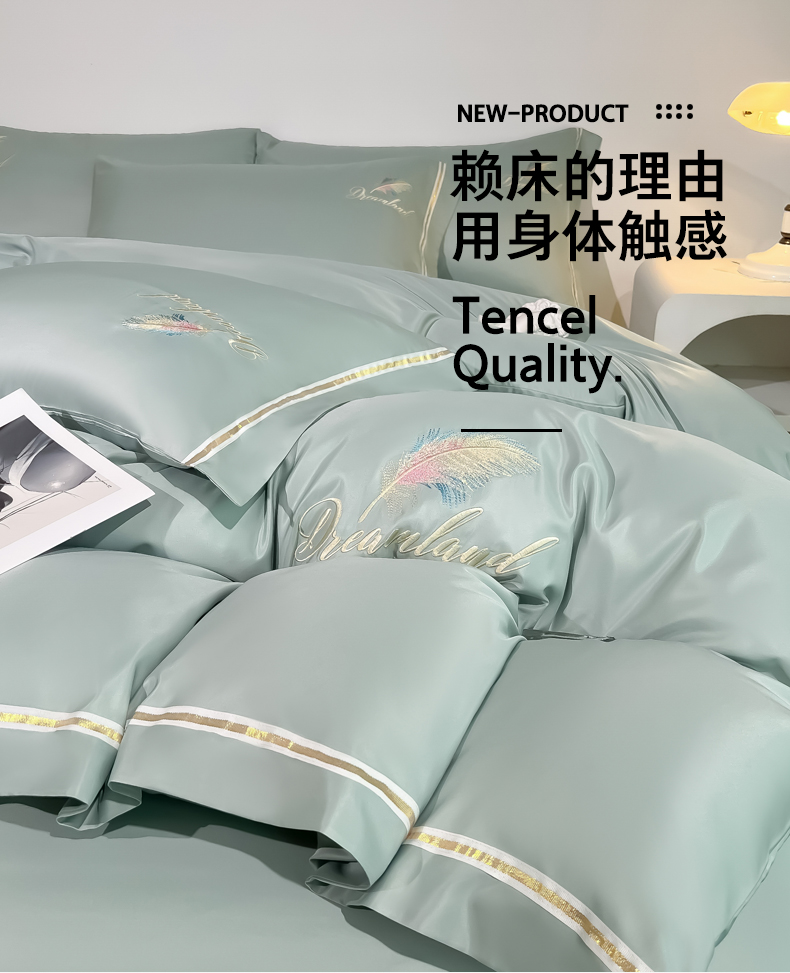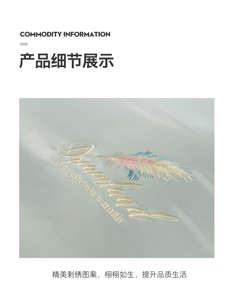 当前位置: 91家纺网 > 商品网购 > 床品套件 > 四件套 > 2025新款水洗冰丝刺绣四件套羽毛系列轻奢时尚北欧风床上用品学生宿舍三四件套 羽毛-浅水绿