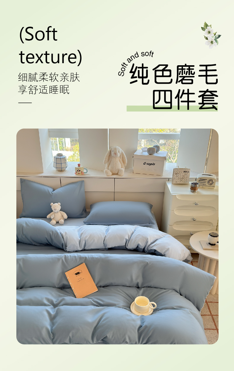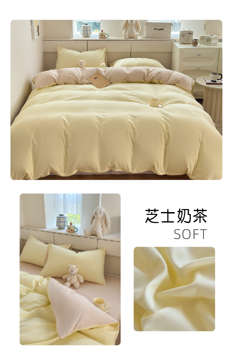 商品名称:(总)可可家纺 2025新款ins风纯色磨毛简约水洗棉四件套亲肤床单被套三件套