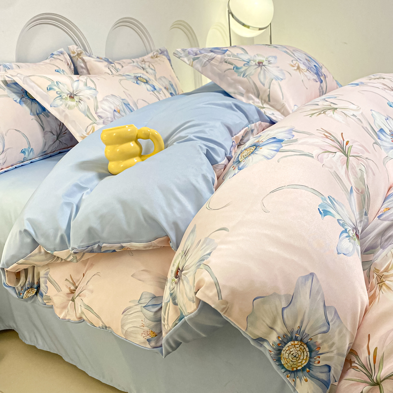 2025新款水洗冰丝美式数码印花四件套轻奢时尚北欧风床上用品学生宿舍三四件套 恋人
