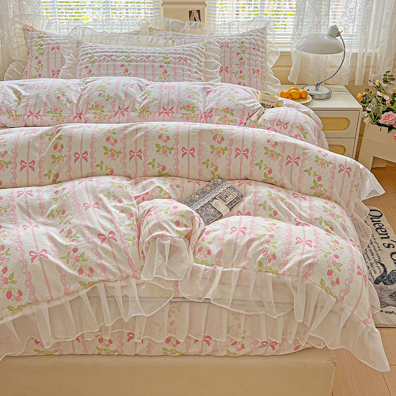 商品名称:(总)艾橙家纺 2025新款雪纺花边加棉床笠款单品四件套-单被套