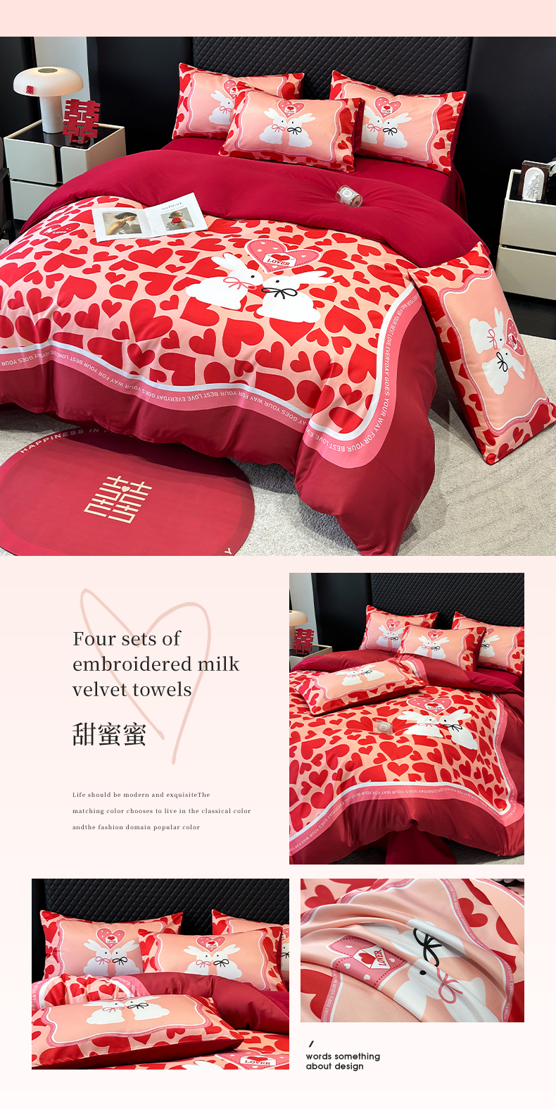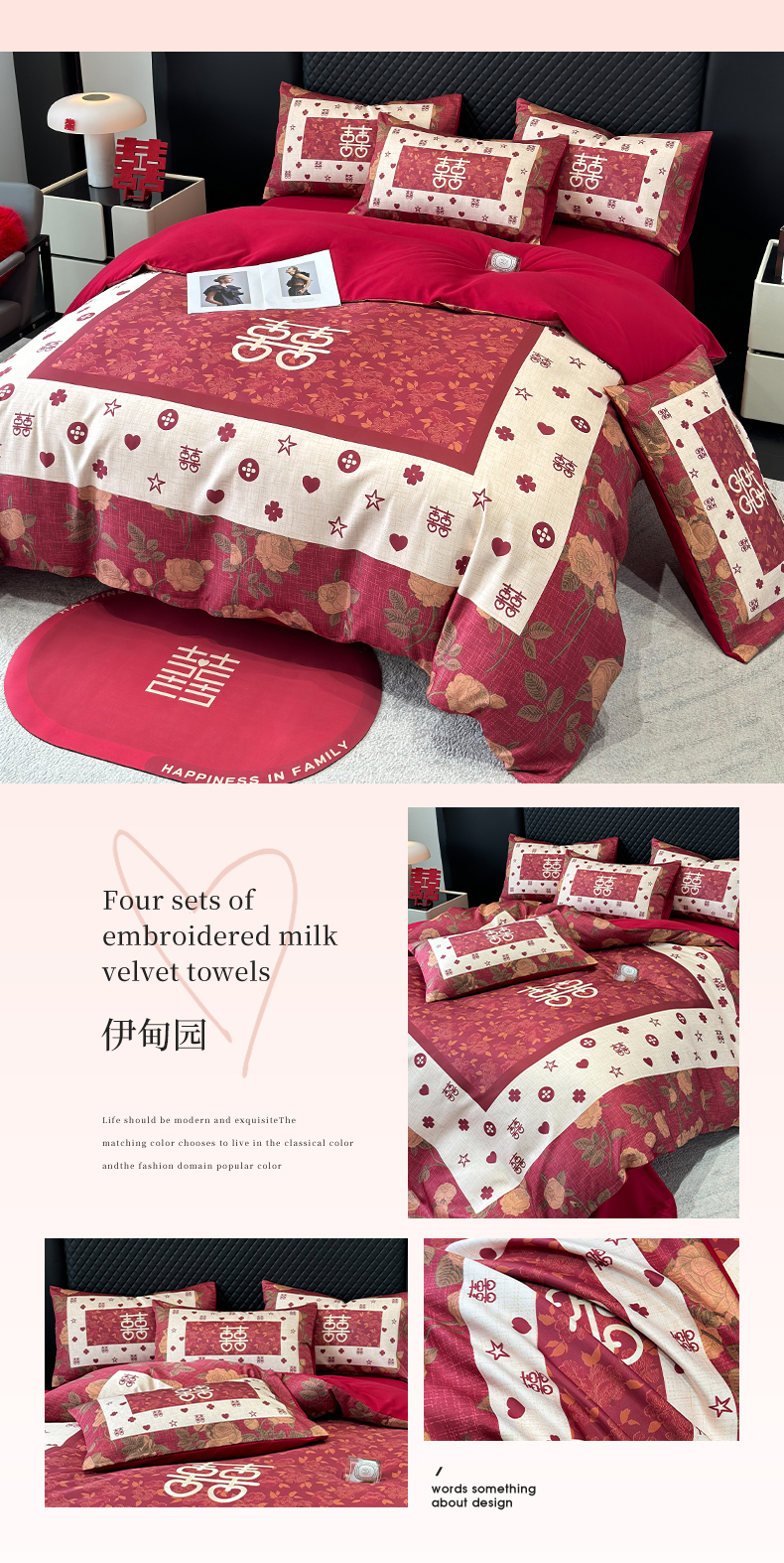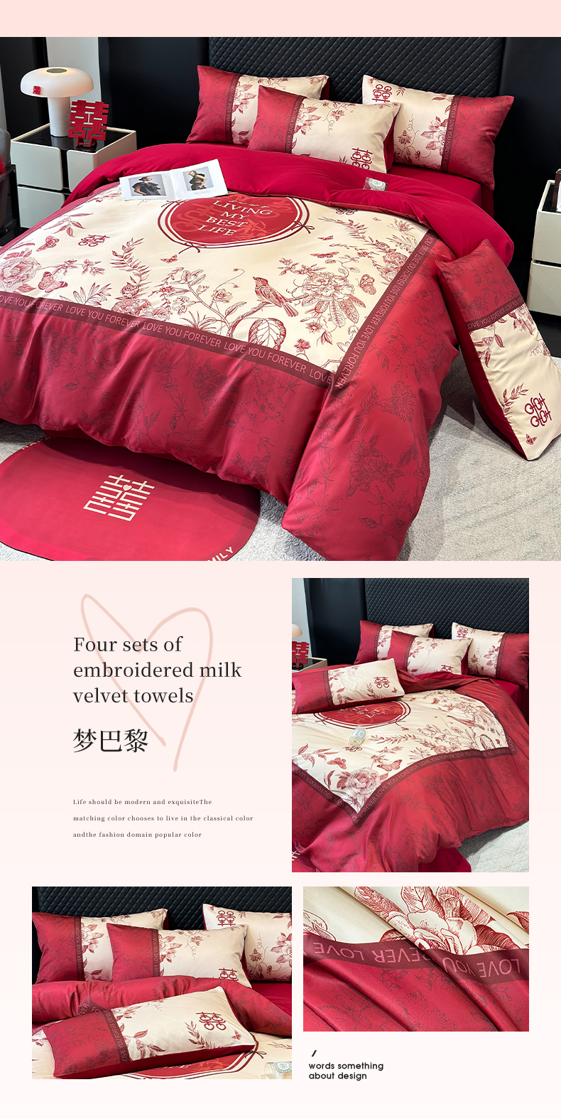 (总)奥汀洛家纺 2025新款亲肤棉数码印花婚庆四件套