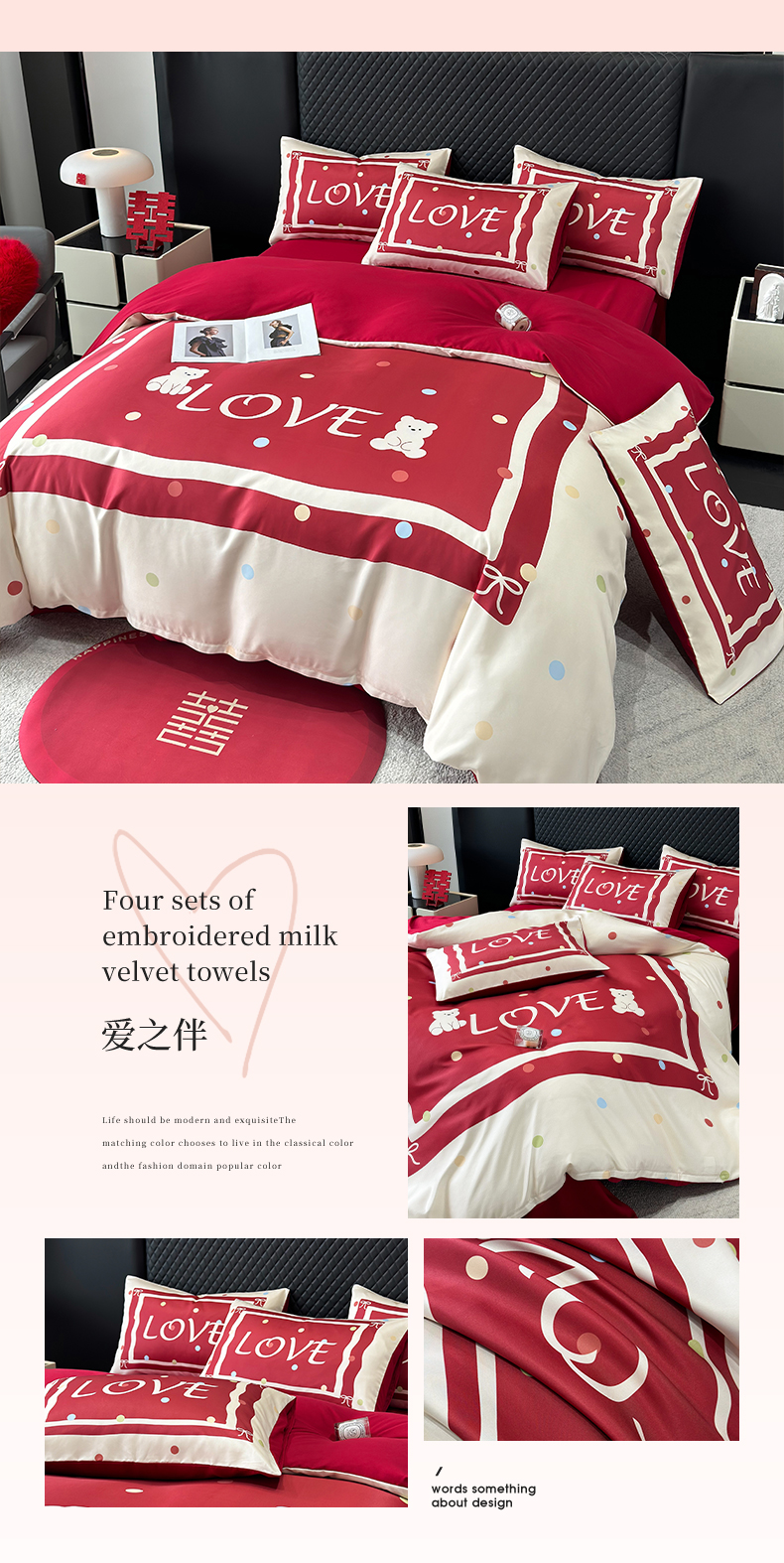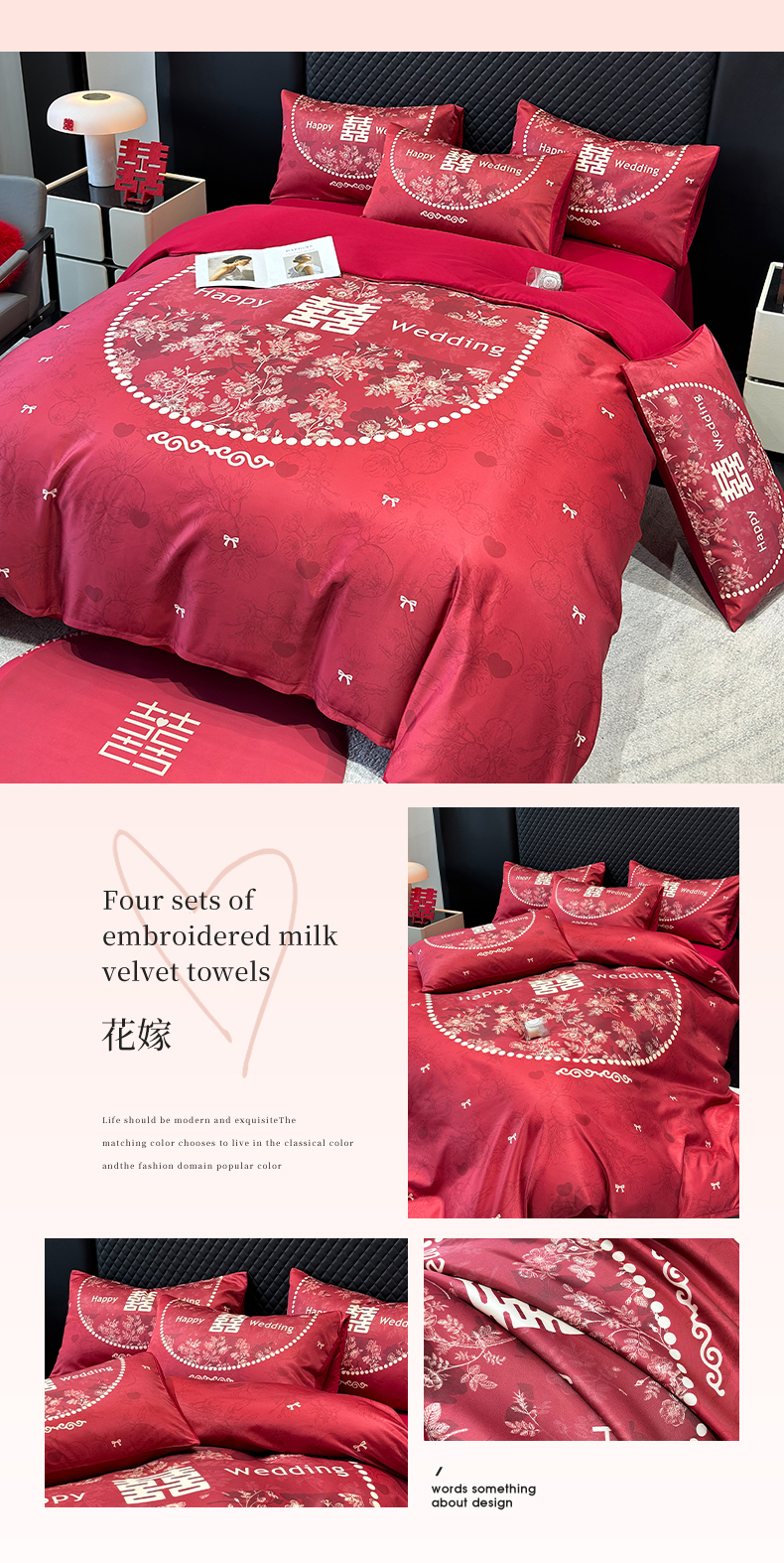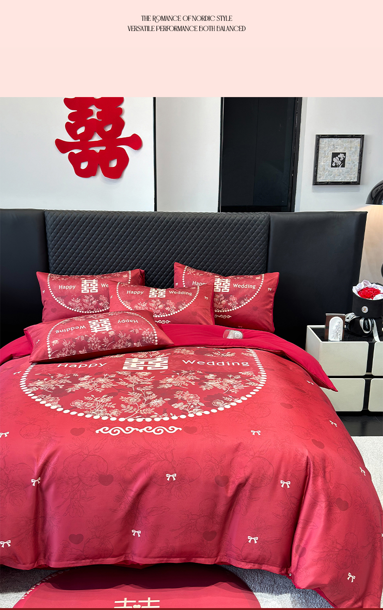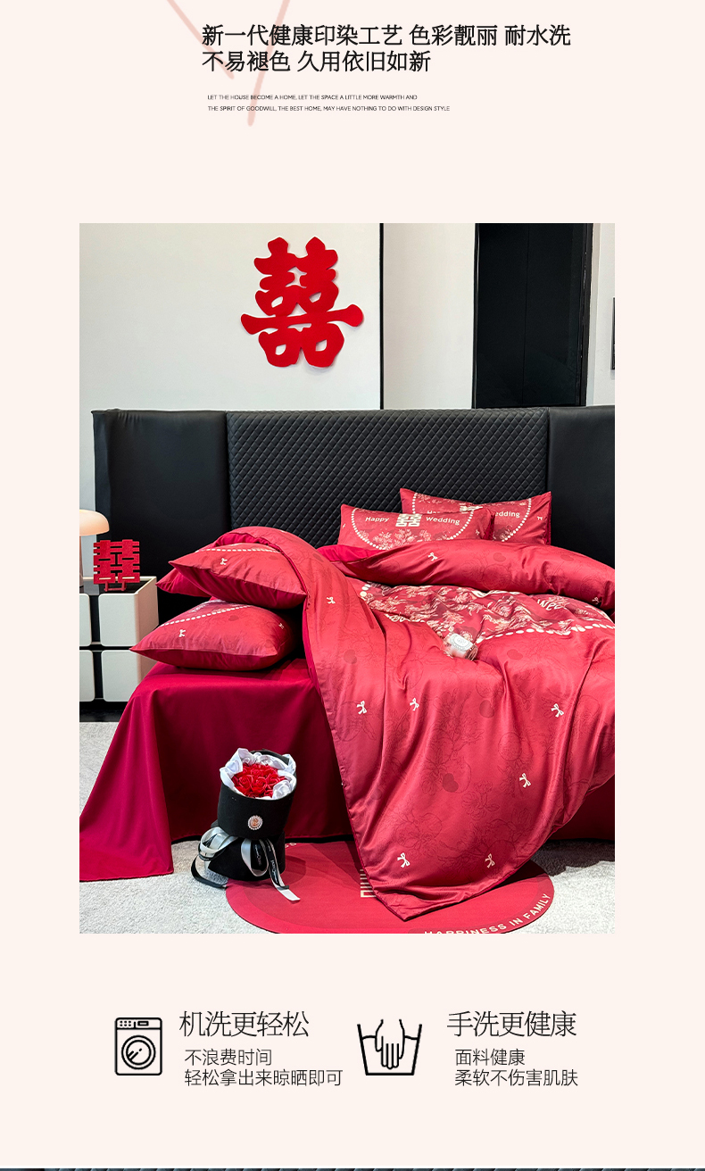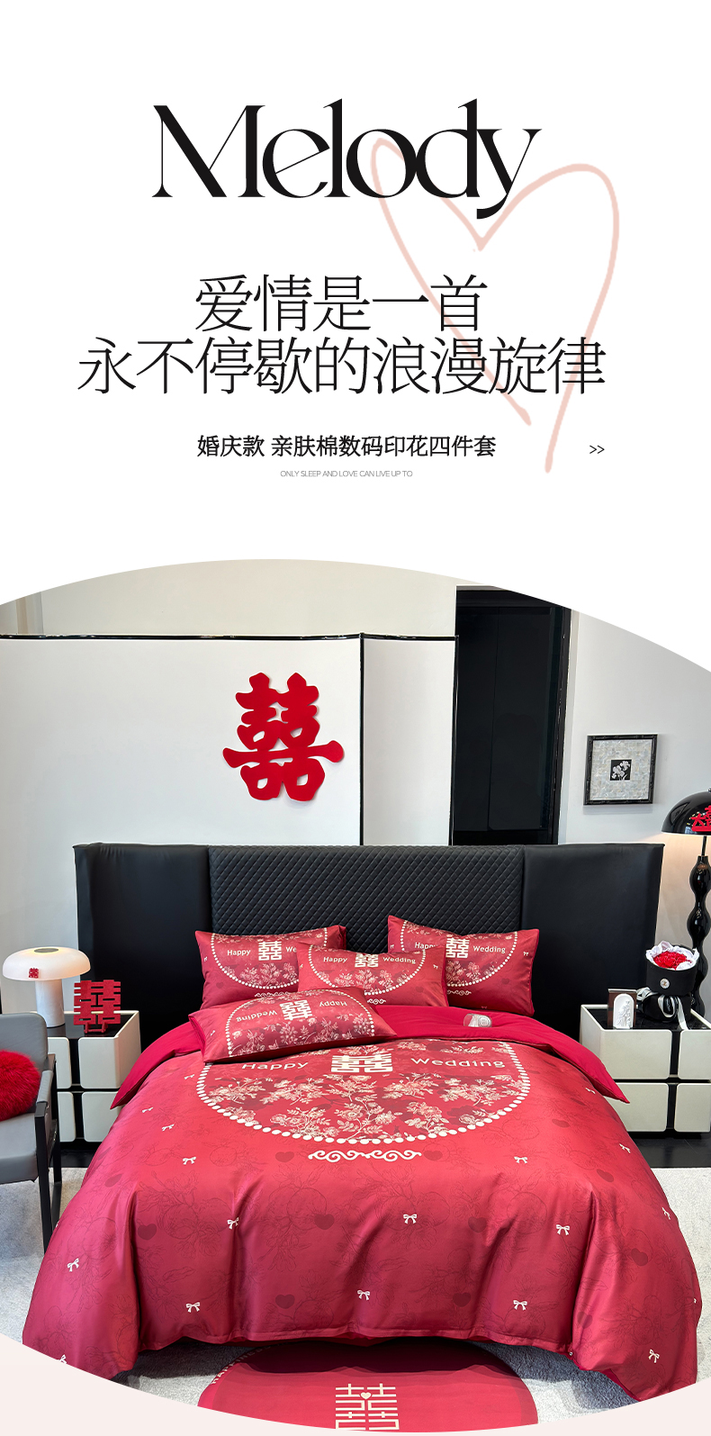 商品名称:(总)奥汀洛家纺 2025新款亲肤棉数码印花婚庆四件套