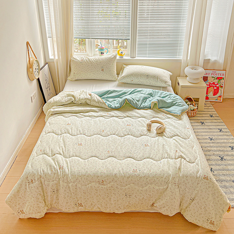玉海棠家纺 2025新款水洗皱皱纱印花夏被 被子被芯 单恋小兔