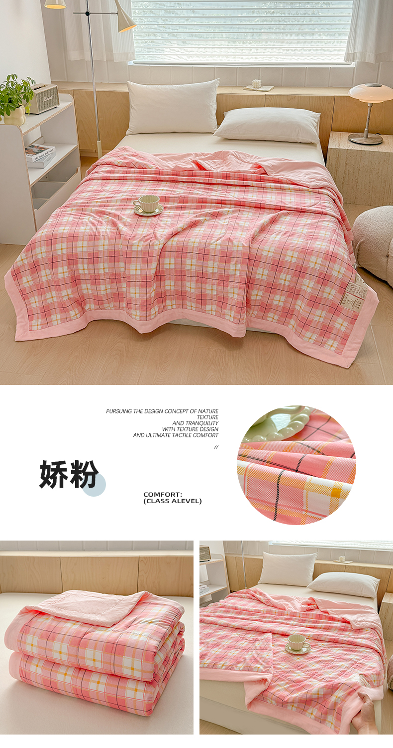 博弈家纺 2025新款水洗棉棉花夏被 娇粉