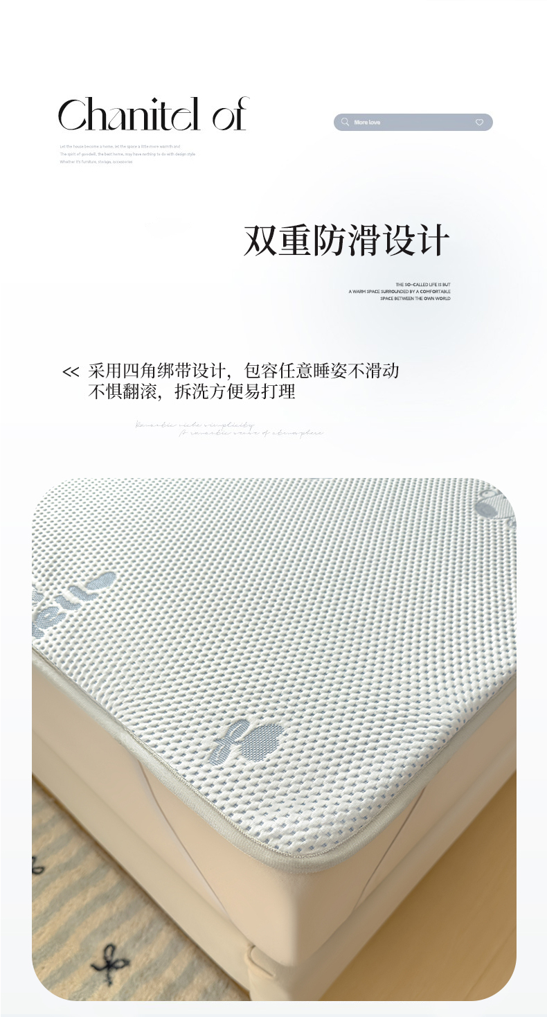 (总)吉祥家纺 2024新款华夫格冰豆豆凉感床裙套件,冰蓝格,冰灰格,冰粉格,冰绿格,灰豆格,粉豆格,绿豆格,蓝豆格