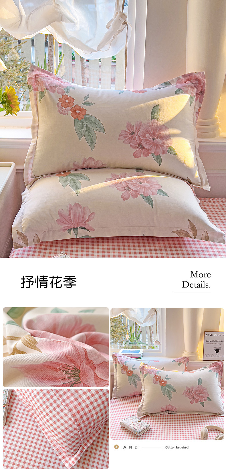 商品名称:依庭 2025新款全棉印花花卉款四件套单品系列-单枕套 抒情花季