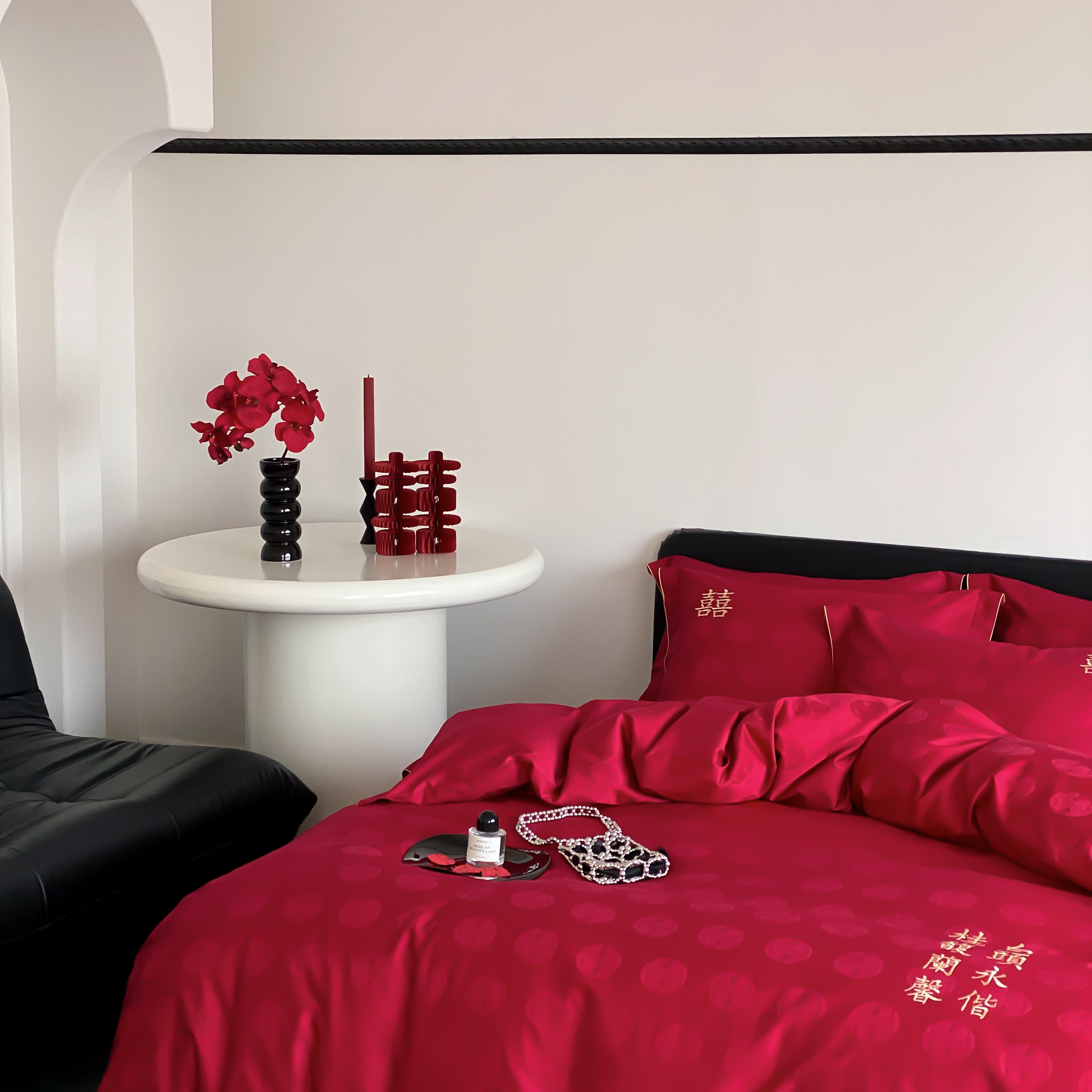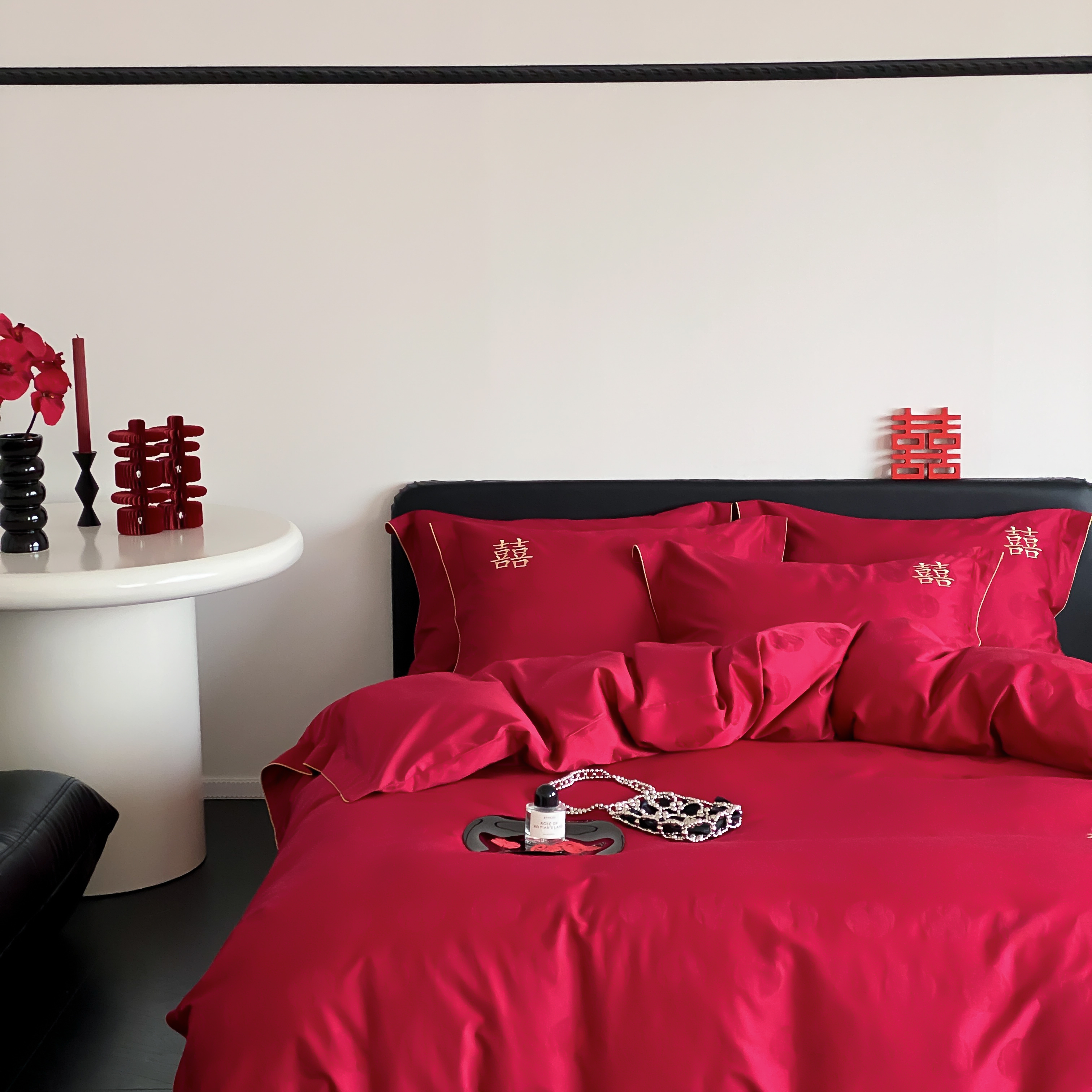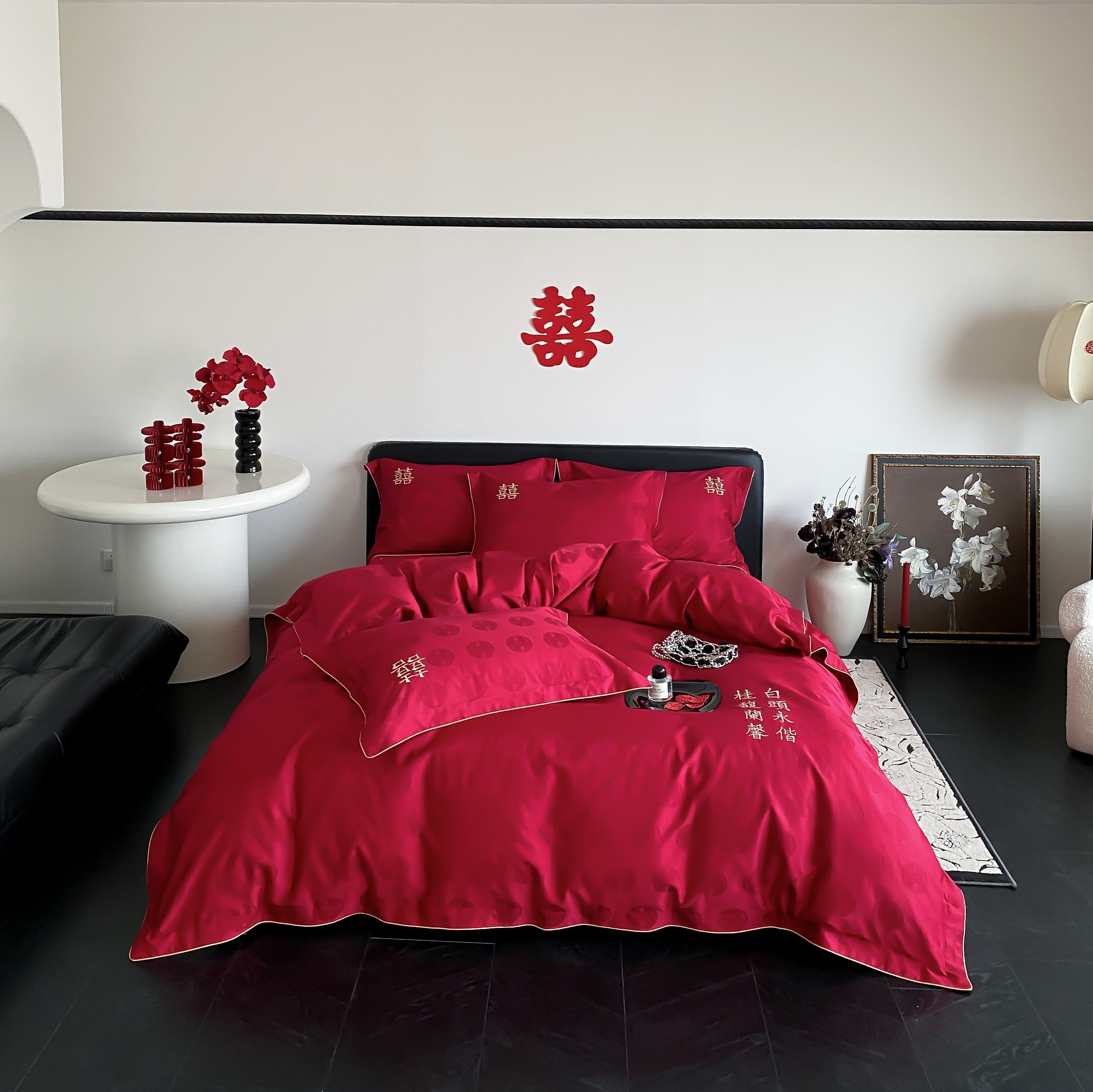(总)江涞 2025新款高克重牛奶绒刺绣四件套-花月,花月-高级红