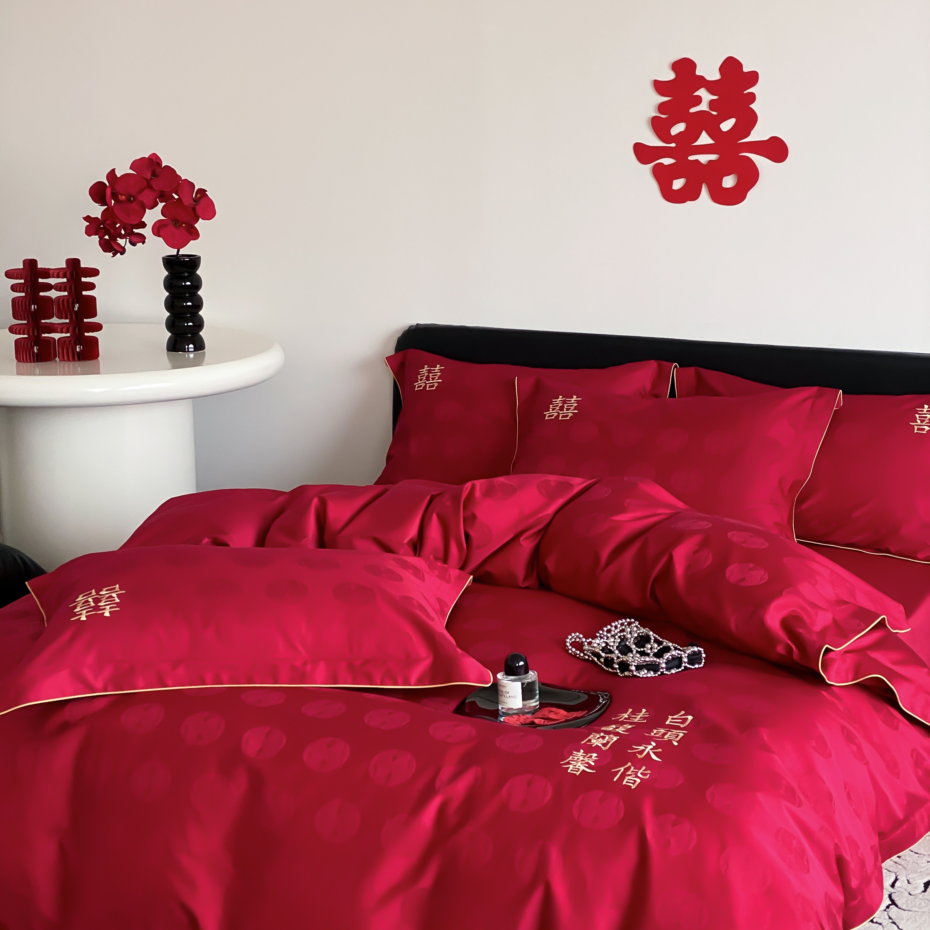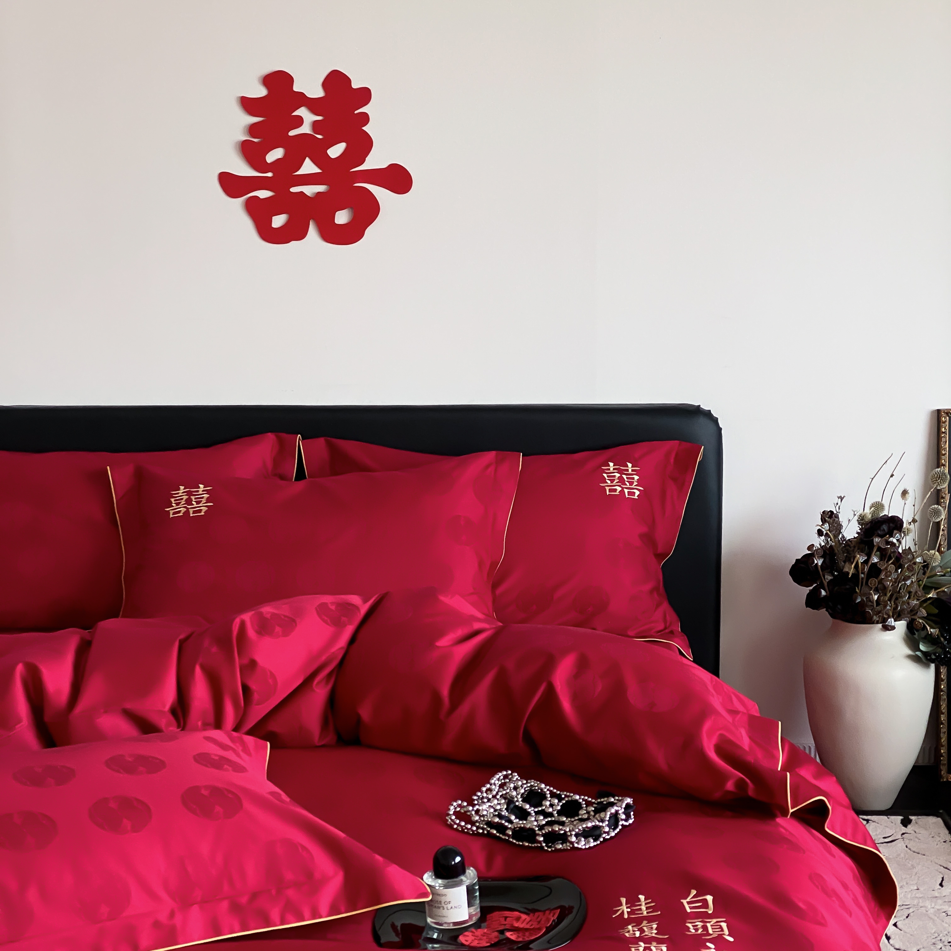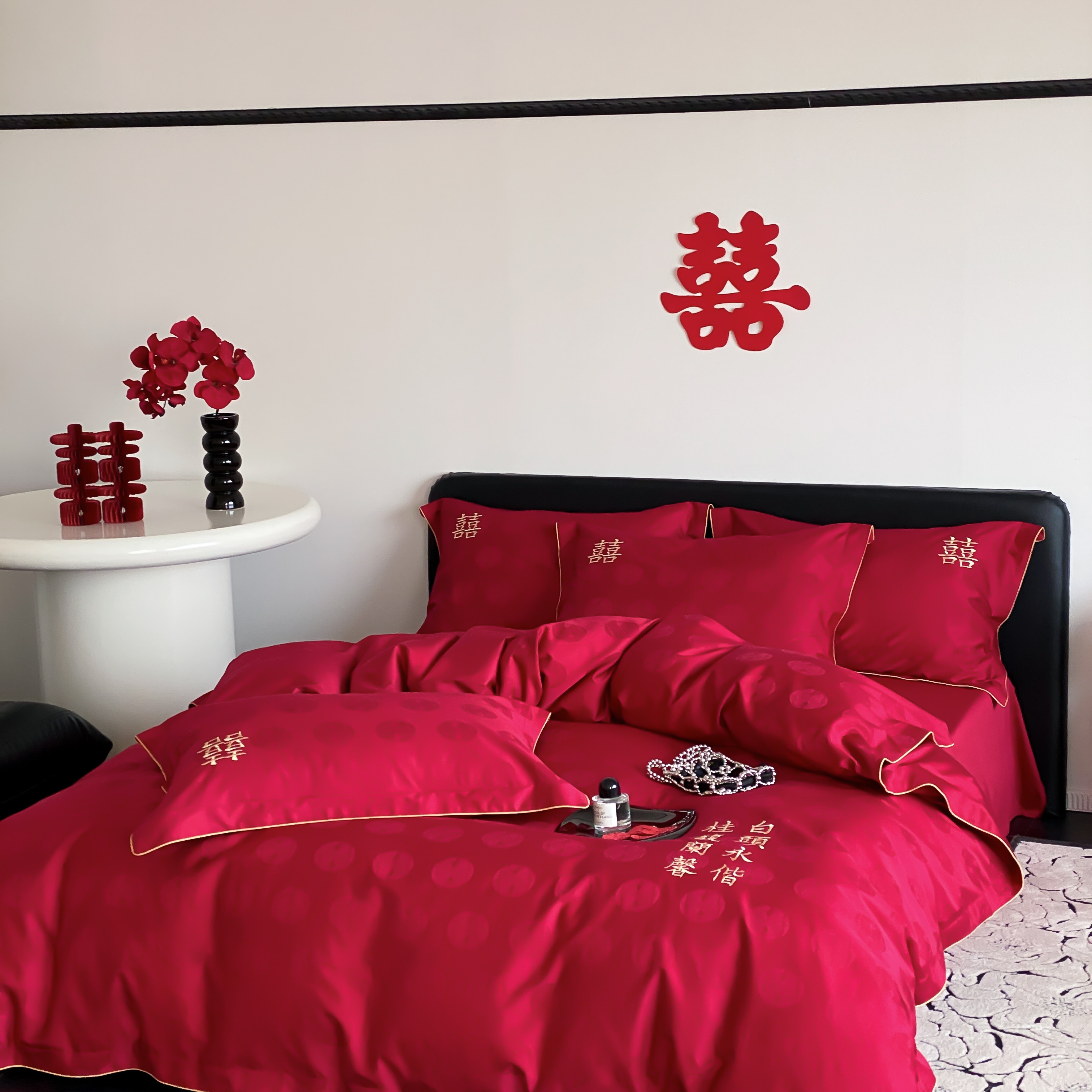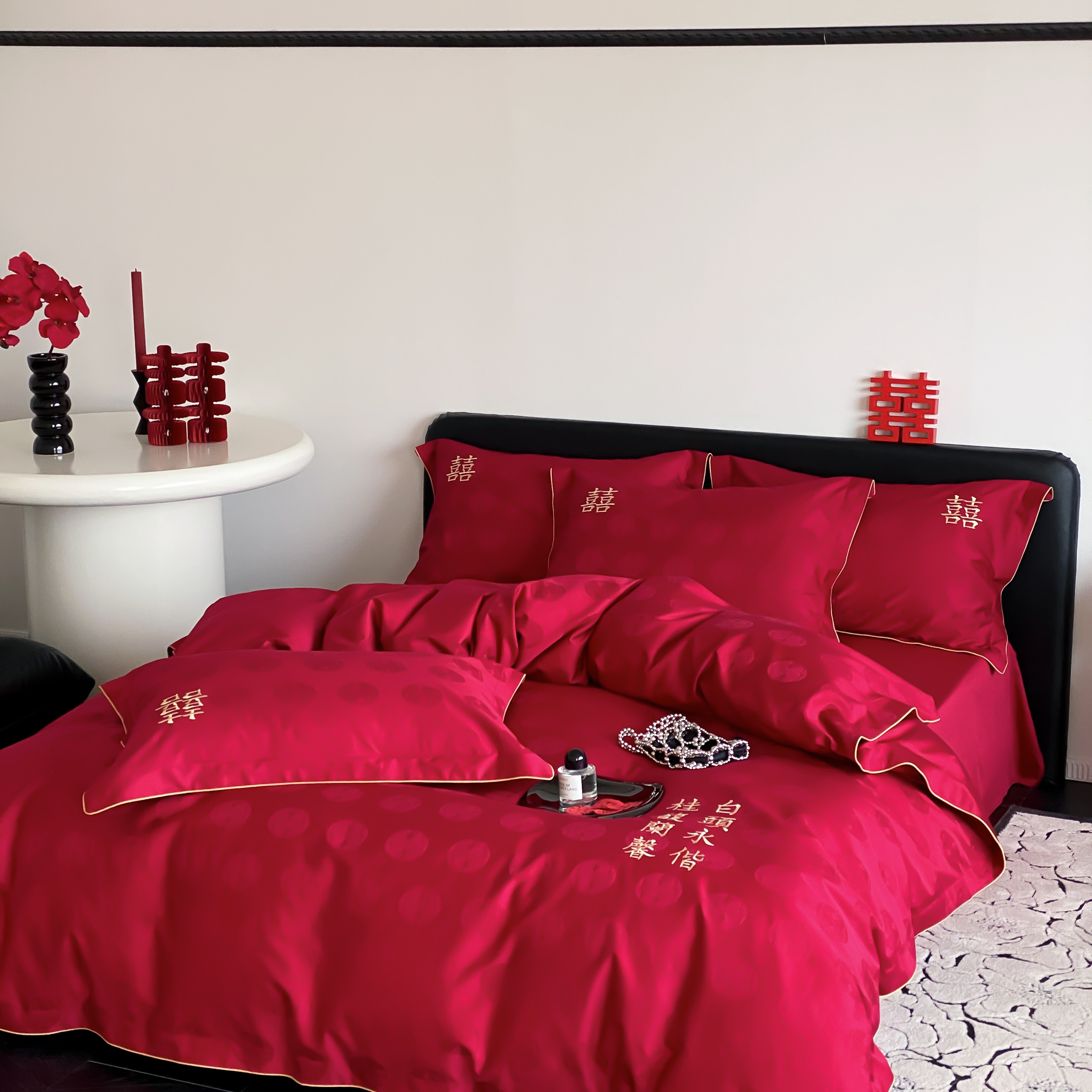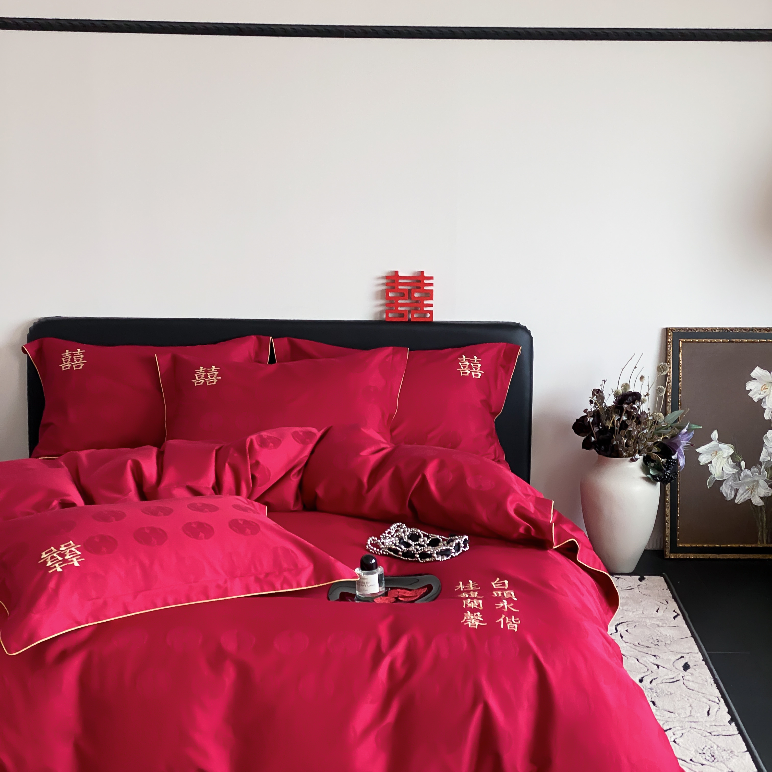 商品名称:(总)江涞 2025新款婚庆长绒棉纯棉提花宽边四件套-福鸳