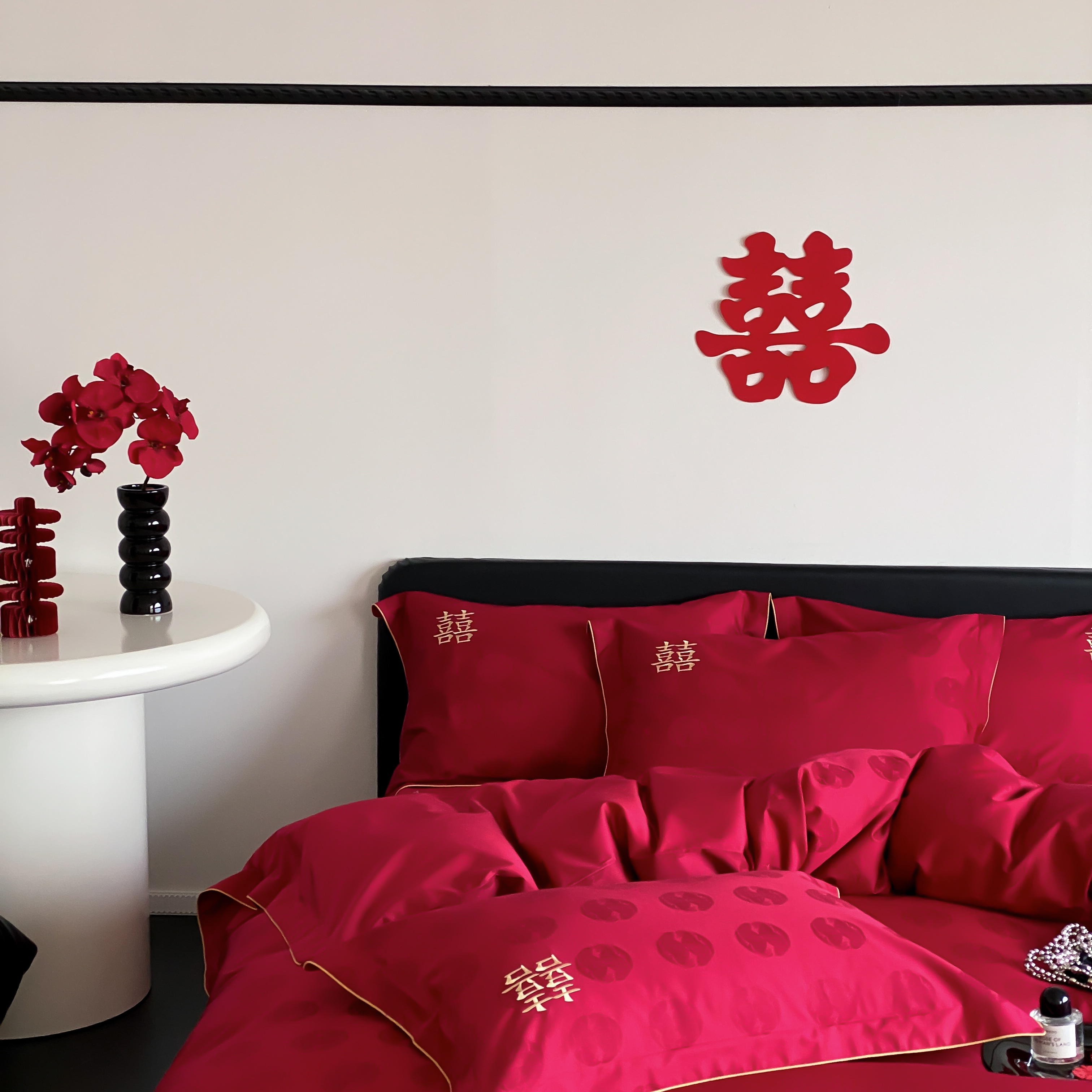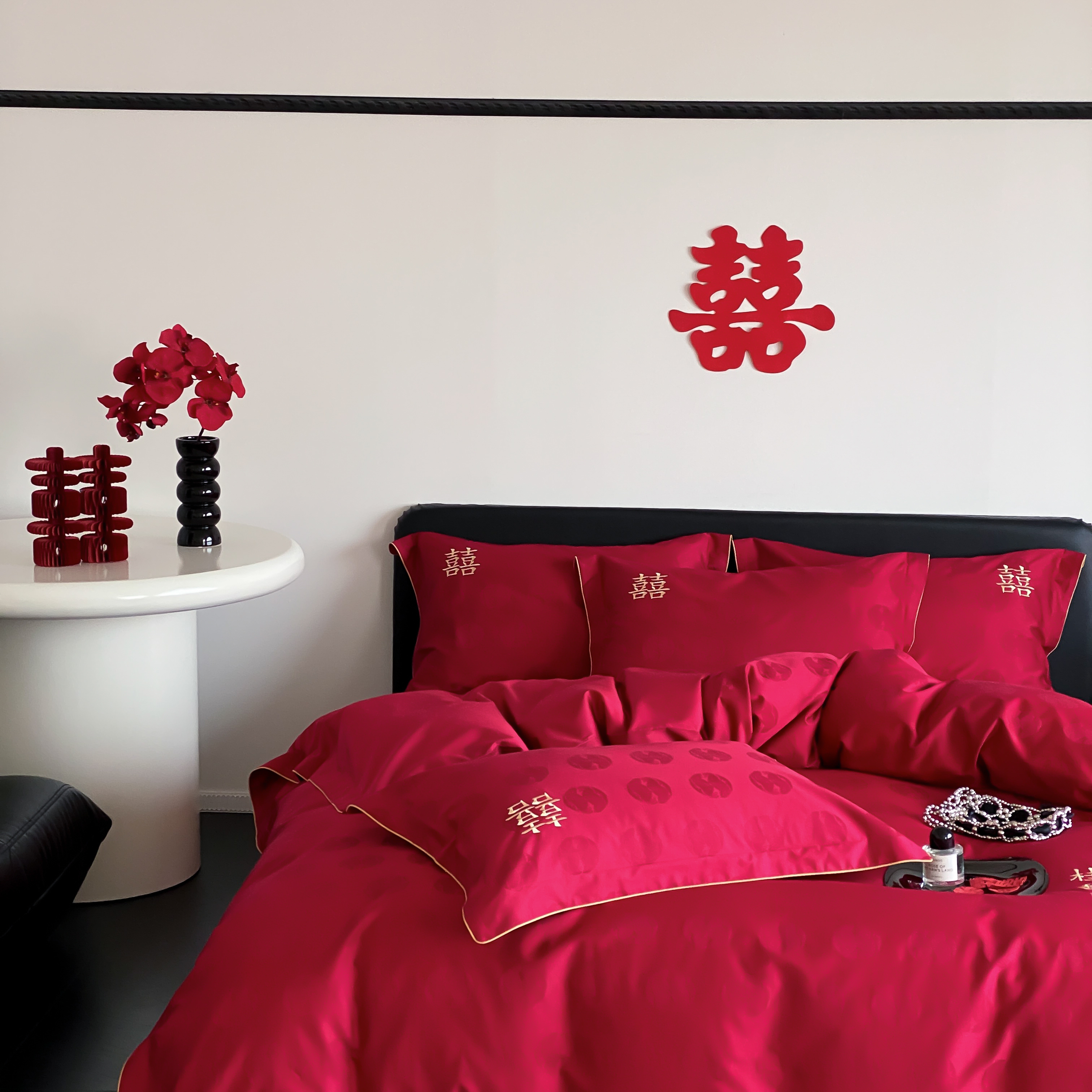 (总)江涞 2025新款婚庆长绒棉纯棉提花宽边四件套-福鸳