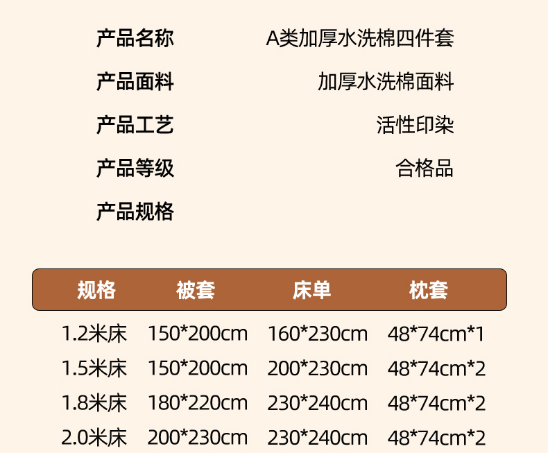 1.8m床单款四件套 (被套 180*220cm) | ¥55.00 |