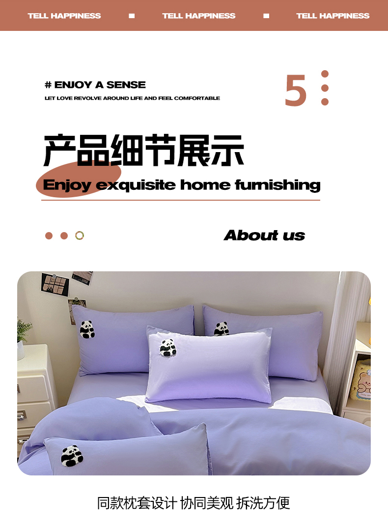 当前位置: 91家纺网 > 商品网购 > 床品套件 > 四件套 > 水洗棉四件套 > 易展家居 2025新款加厚水洗棉四件套-熊猫 亮紫