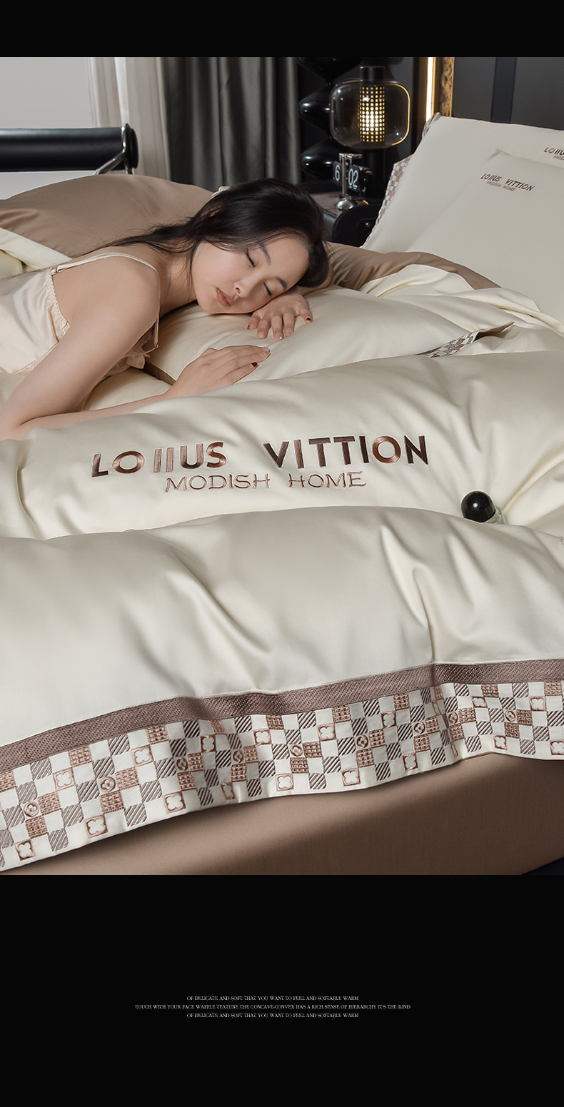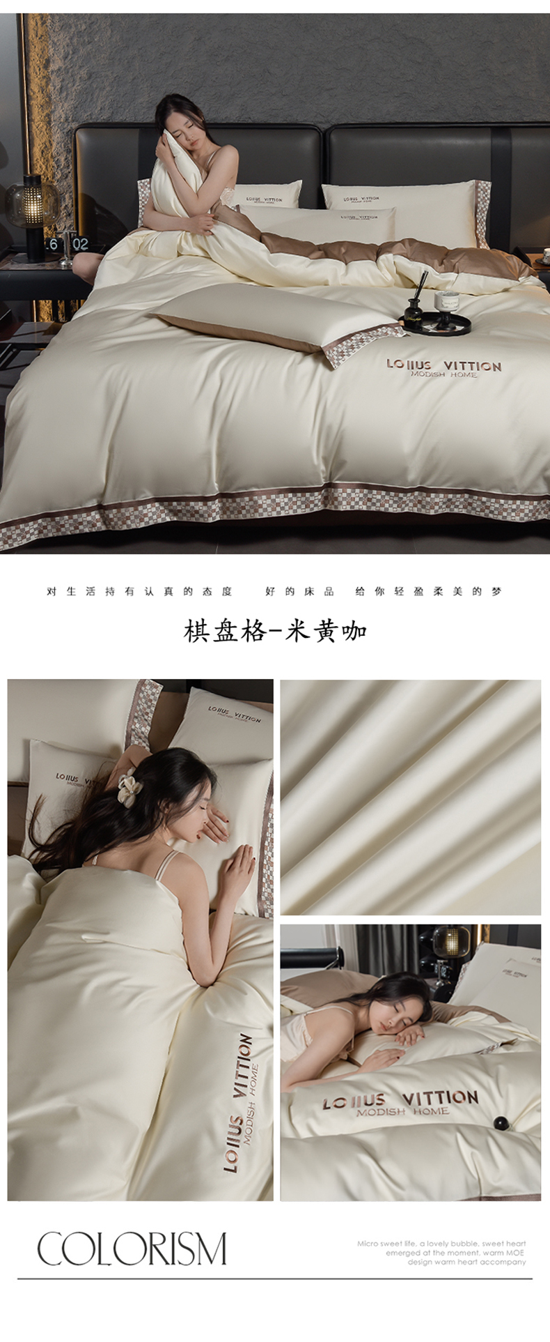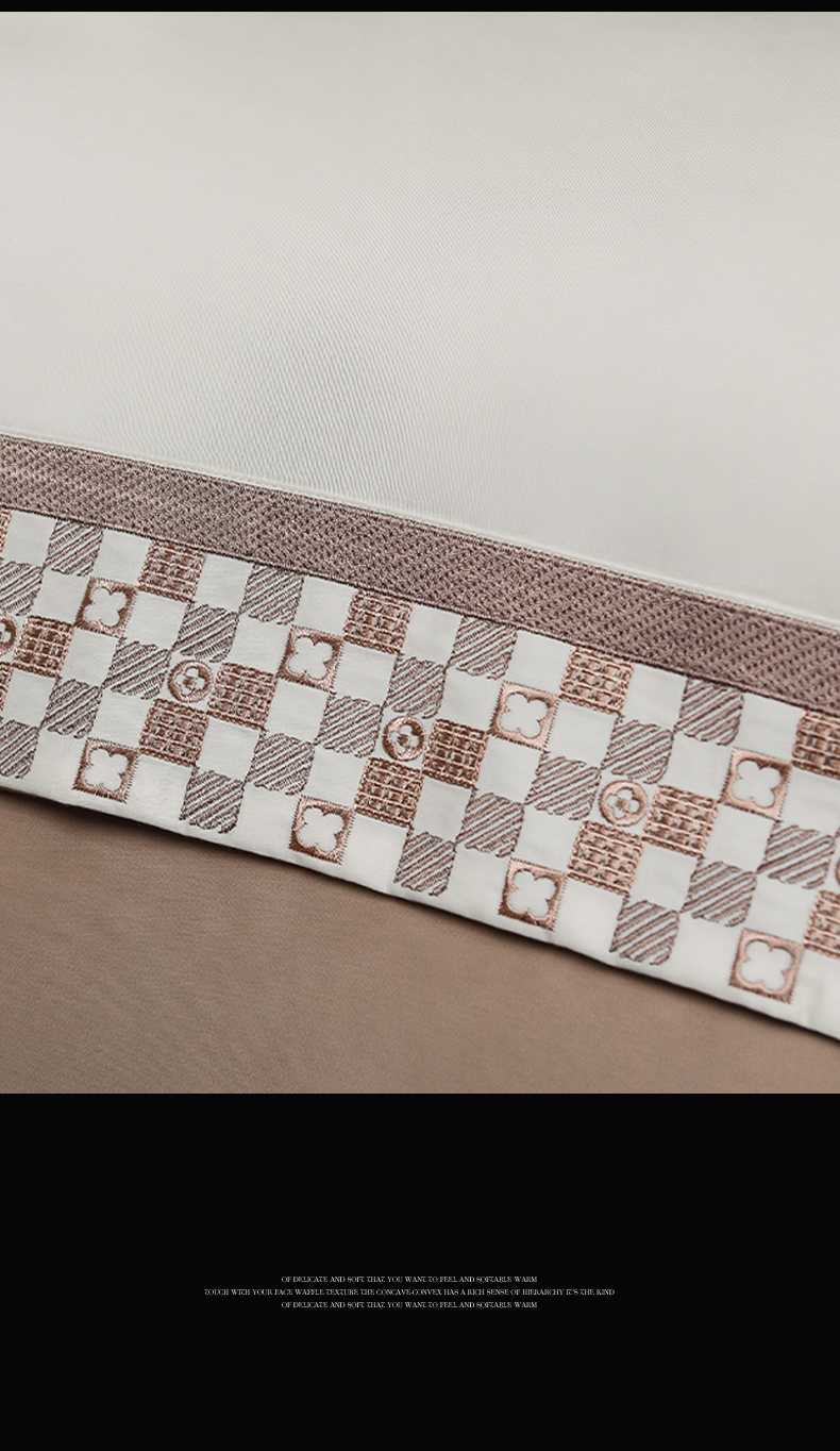 瑞驰家纺 2025新款长绒棉纯棉绣花四件套-棋盘格系列 棋盘格-米黄咖