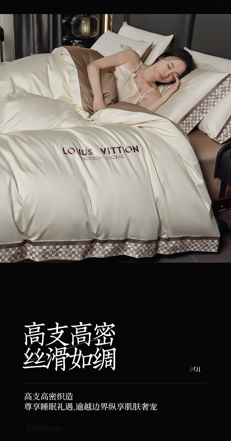 (总)瑞驰家纺 2025新款长绒棉纯棉绣花四件套-棋盘格系列,棋盘格-高级灰,棋盘格-米黄咖,棋盘格-摩卡橙,棋盘格-中咖