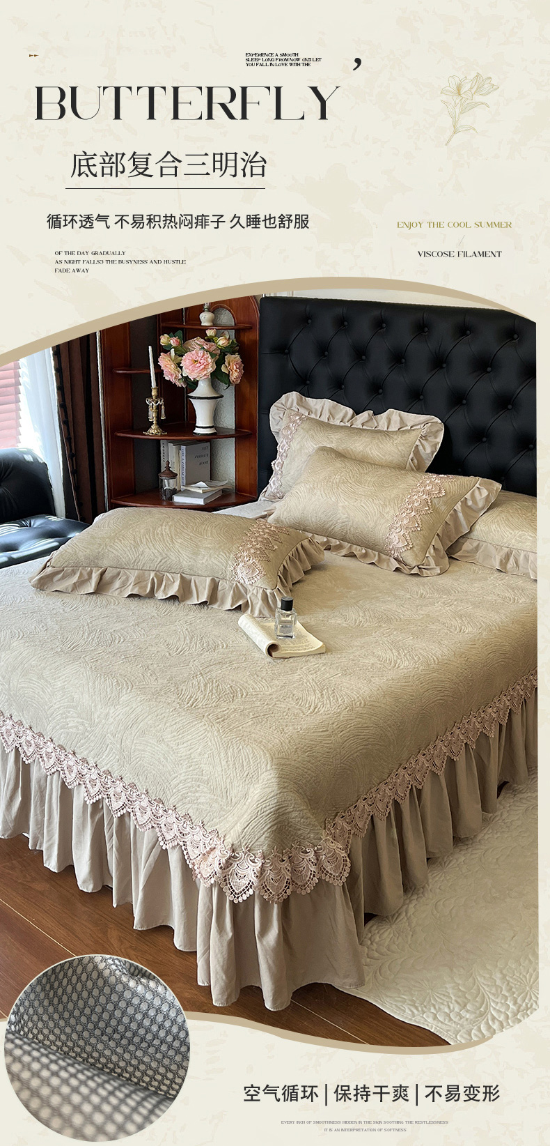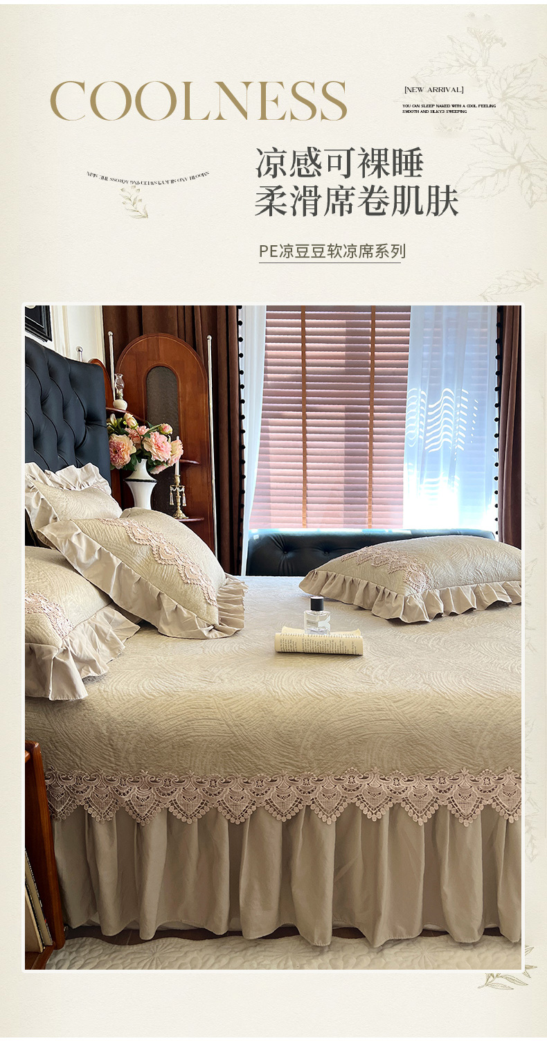 (总)乐朵家居 2025新款洛丽塔系列A类凉感席三件套,洛丽塔-豆沙,洛丽塔-蓝,洛丽塔-绿,洛丽塔-奶白,洛丽塔-玉