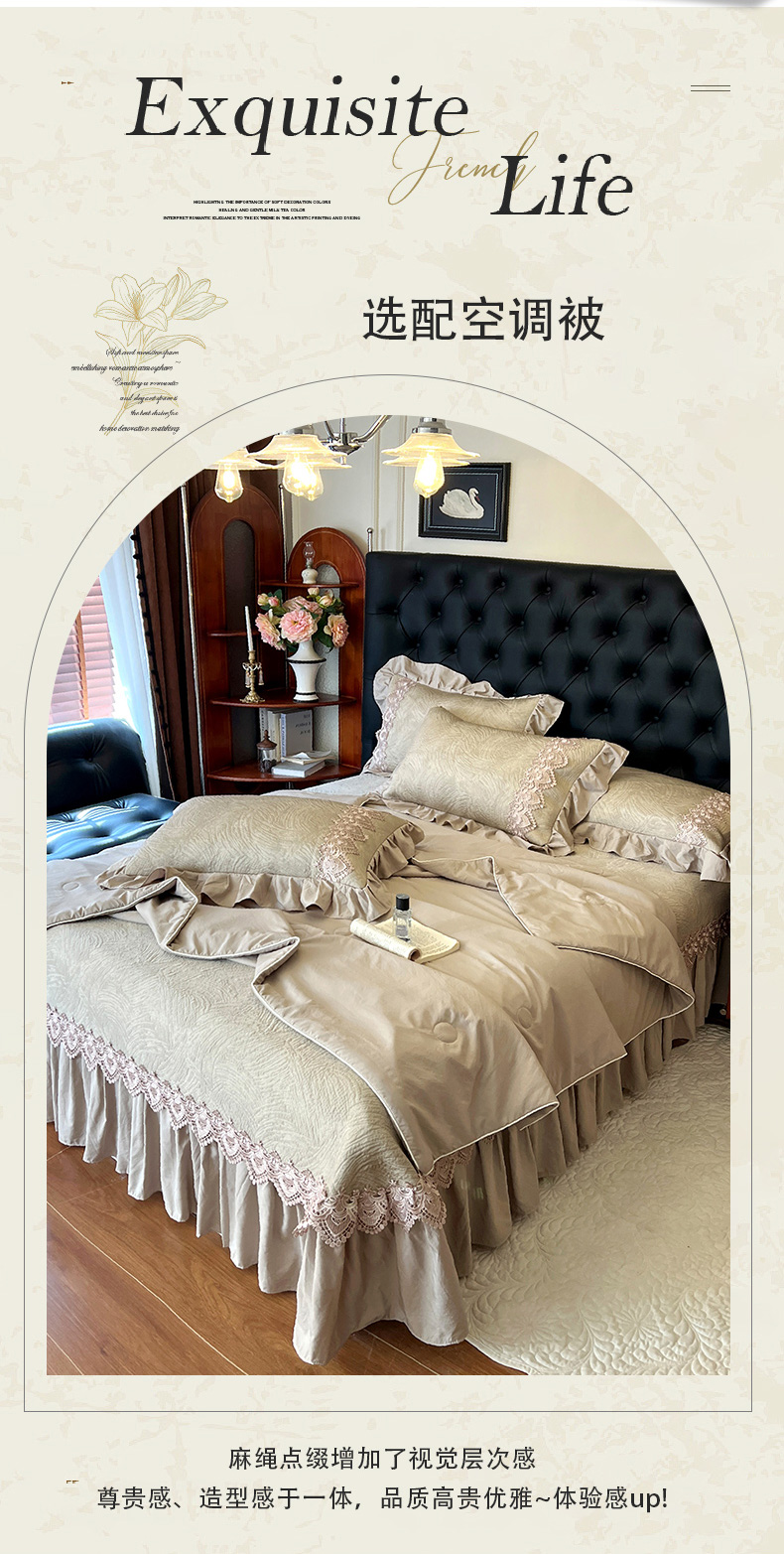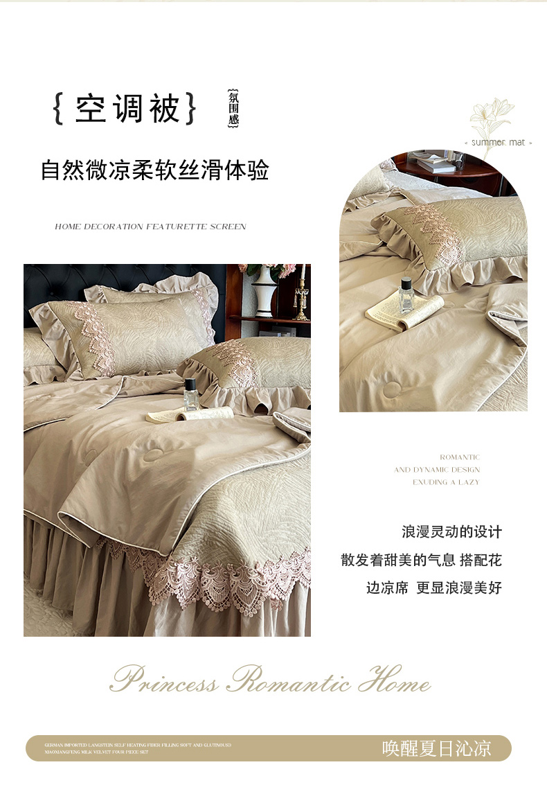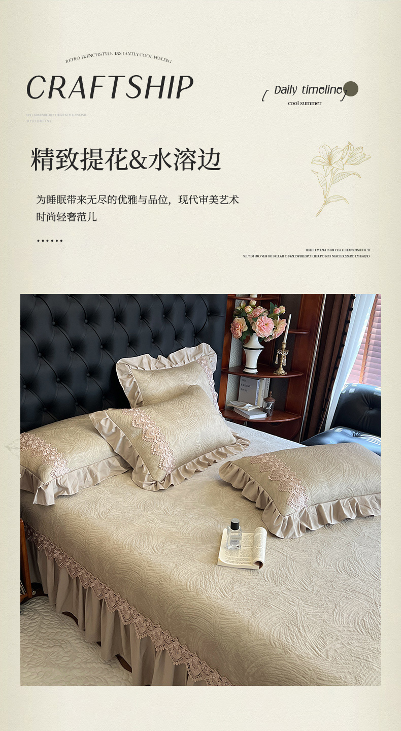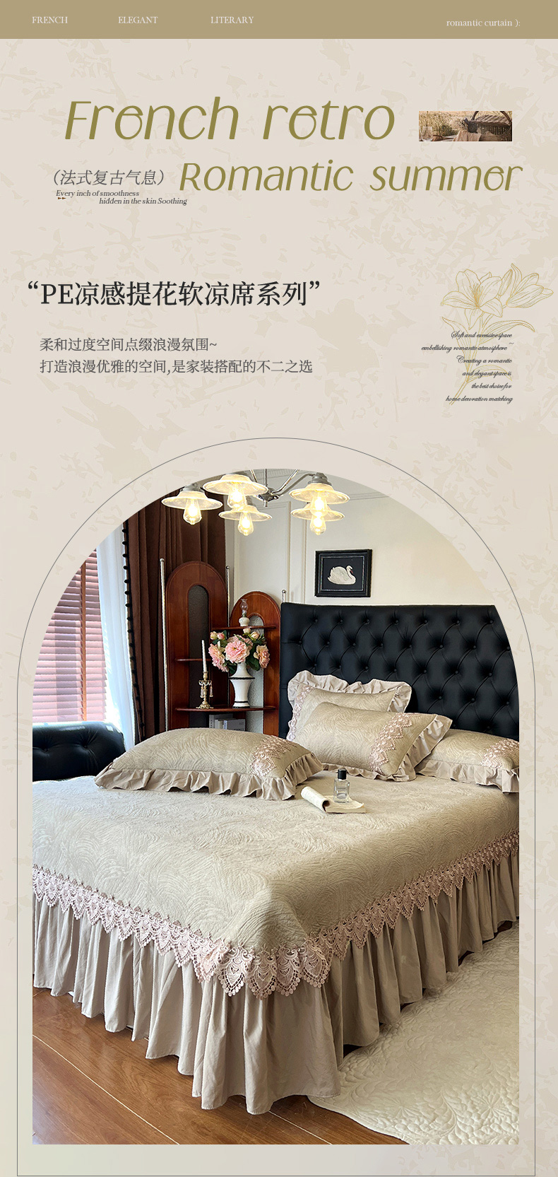 商品名称:乐朵家居 2025新款 唐顿庄园 (可配同色系空调被)PE凉席三件套(复合) 控价238 香槟金