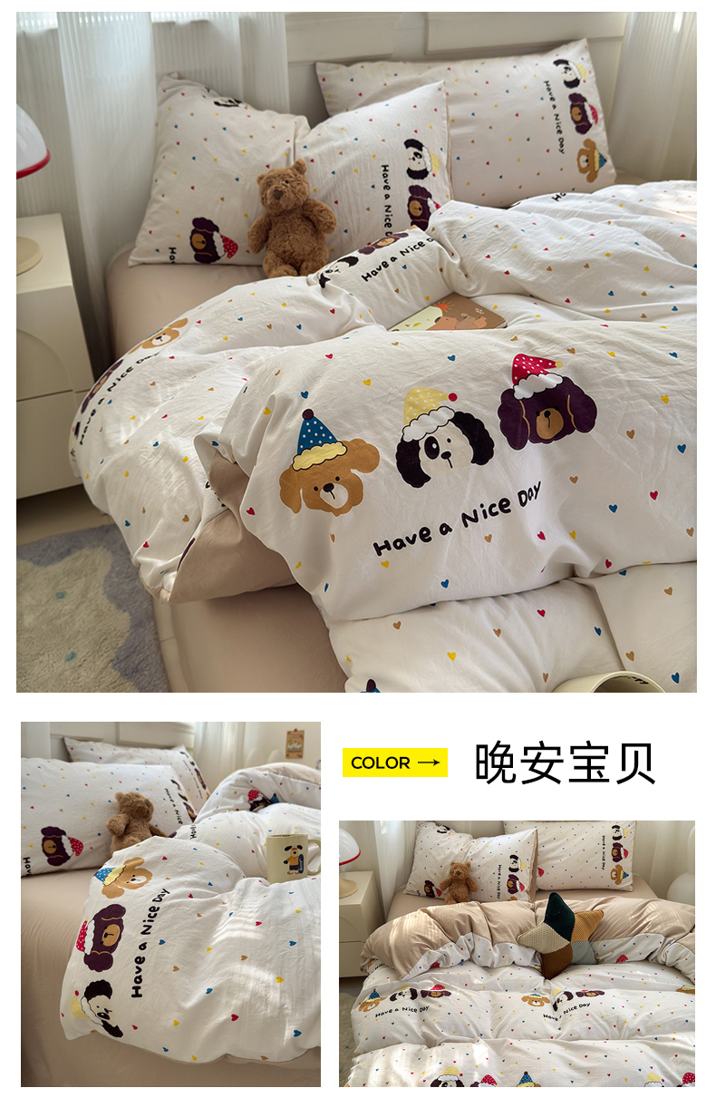 • 91家纺网 家纺一手货源 找家纺 沐芷 2025 软萌卡通超柔水洗棉单被套A类 被套单件被罩 晚安宝贝
