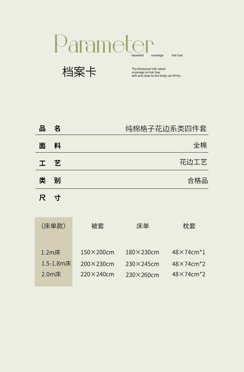 商品名称:(总)乐童家纺 2025新款纯棉小清新格子花边系类四件套
