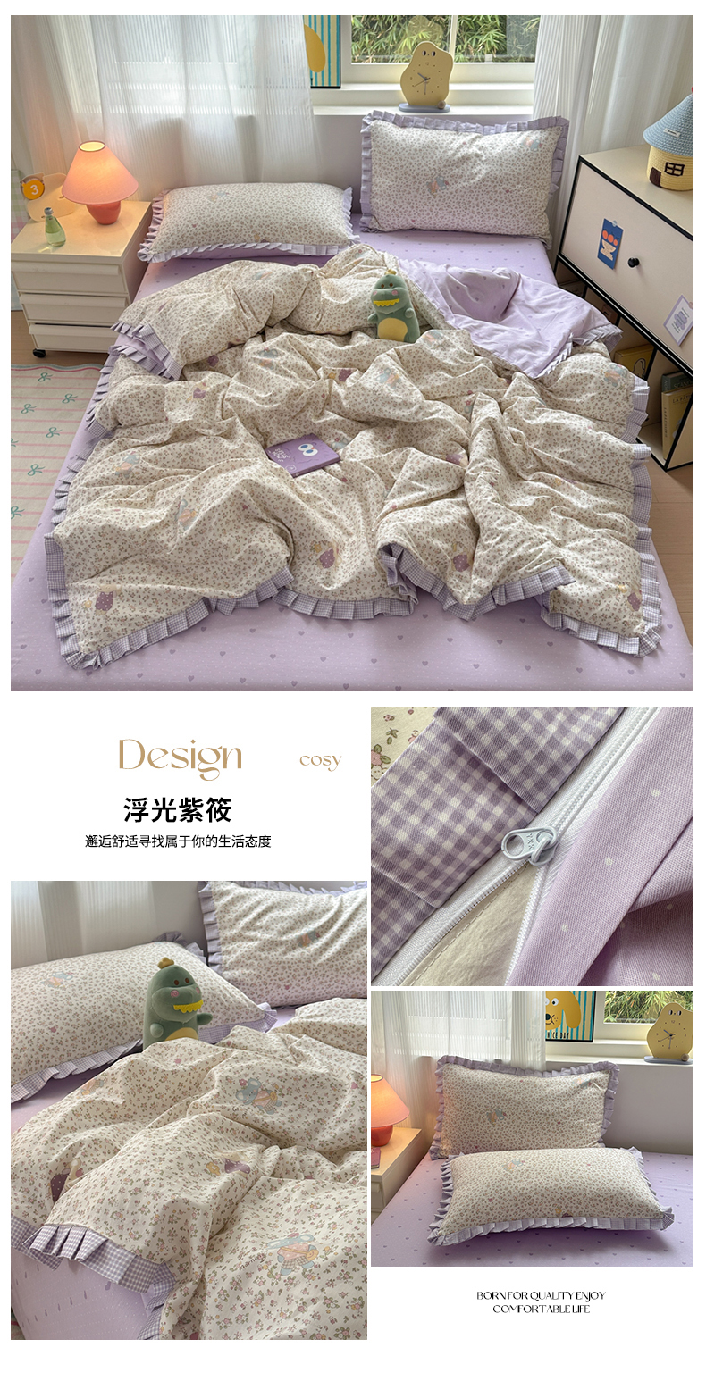 (总)乐童家纺 2025新款纯棉小清新格子花边系类四件套