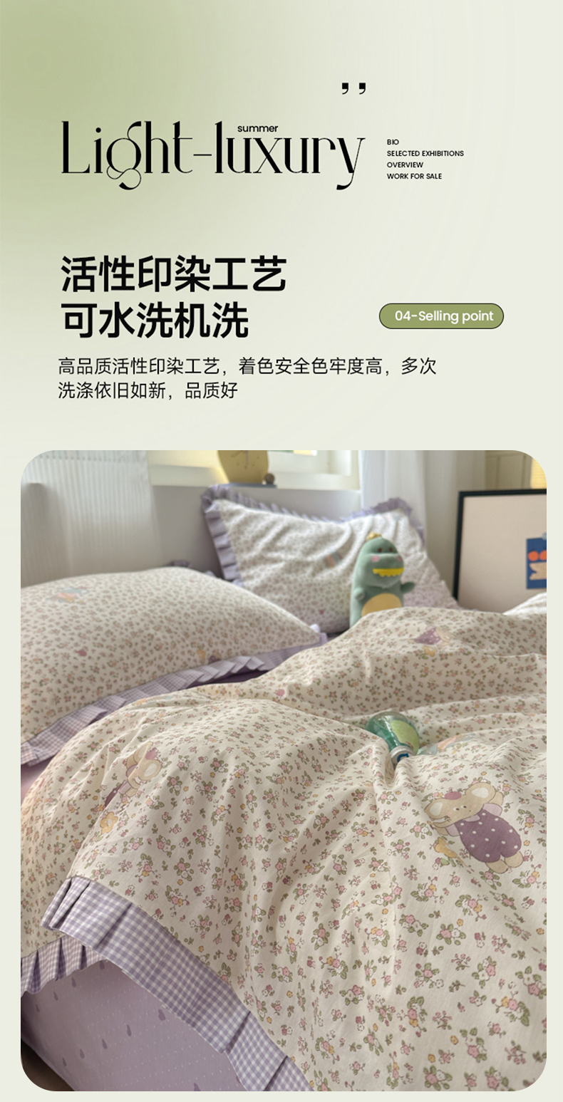 (总)乐童家纺 2026新款全棉纯棉拼接花边小清新工艺款四件套,彩虹木马,春日小兔,花田兔兔,凯莉梦境,口袋故事,浪花轻歌,毛线彩虹,梦境手账,千禧少女咖,少女日记,心跳瞬间
