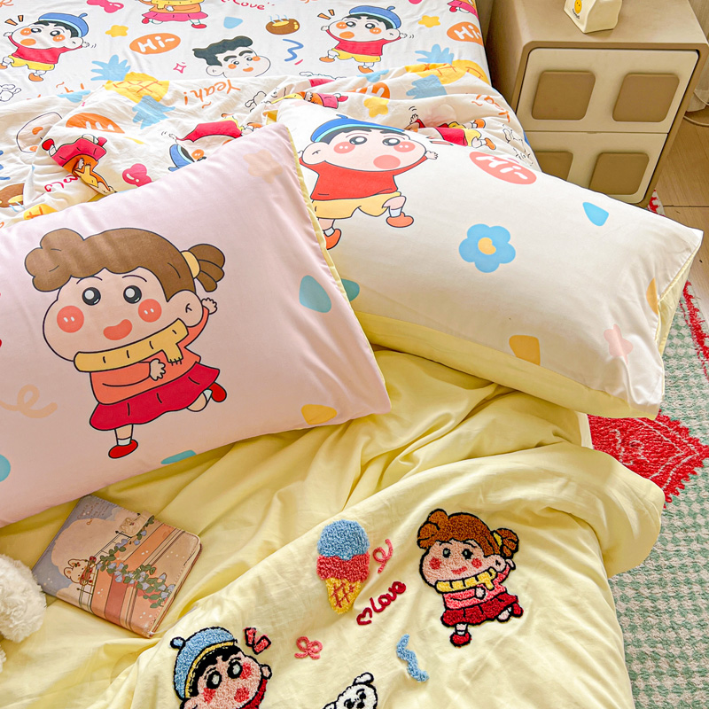 (总)一霖家纺 2025新款大版卡通牛奶绒四件套,搞怪新新紫,俏皮小新-黄,俏皮小新-蓝,甜心猫咪,星空小新