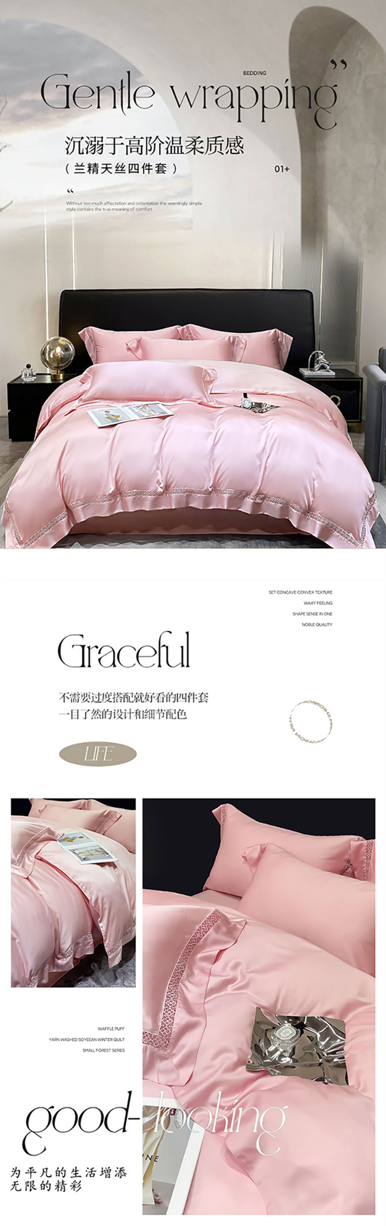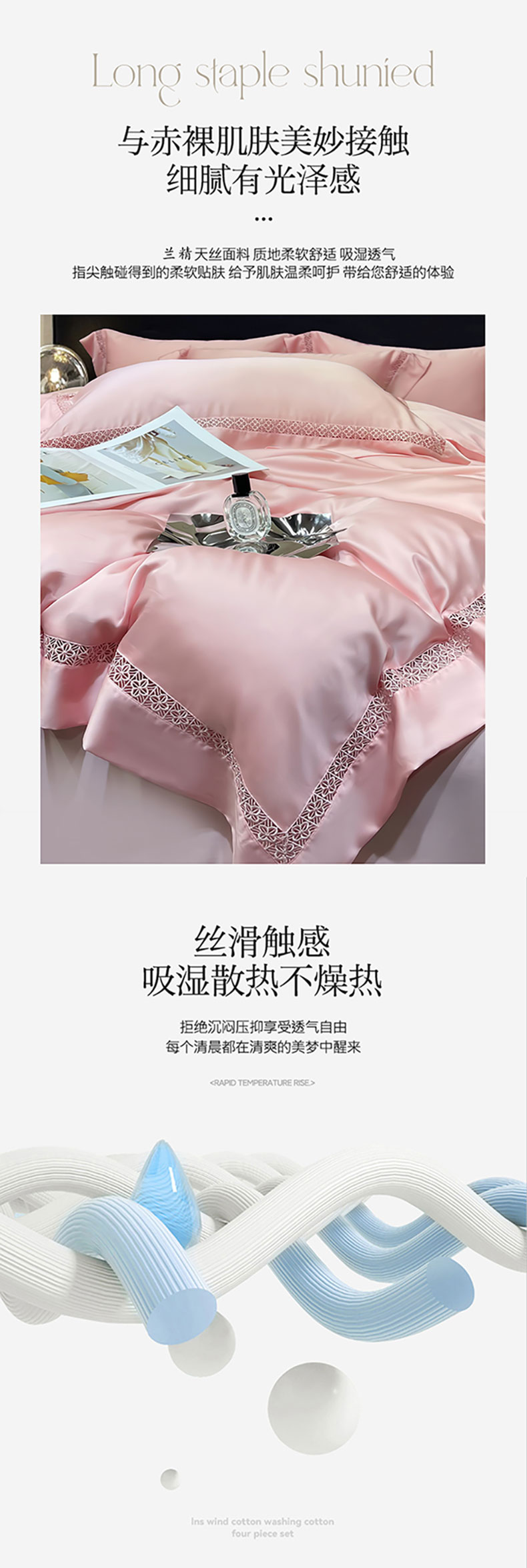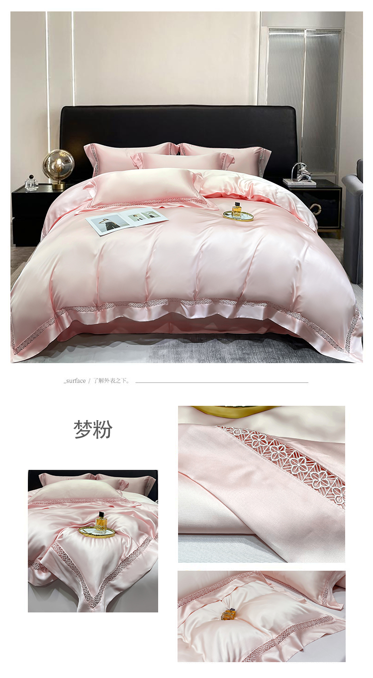 商品名称:洽想家 2025新款80支天丝镂空瑾系列四件套 瑾-北欧粉