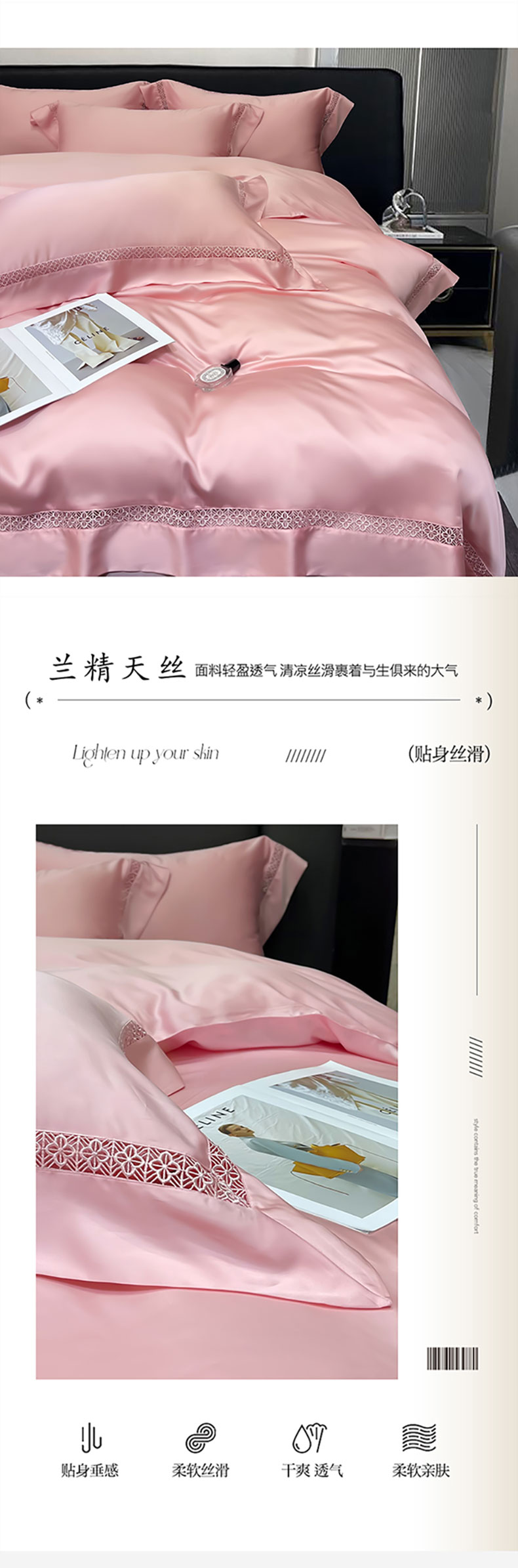 洽想家 2025新款80支天丝镂空瑾系列四件套 瑾-北欧粉