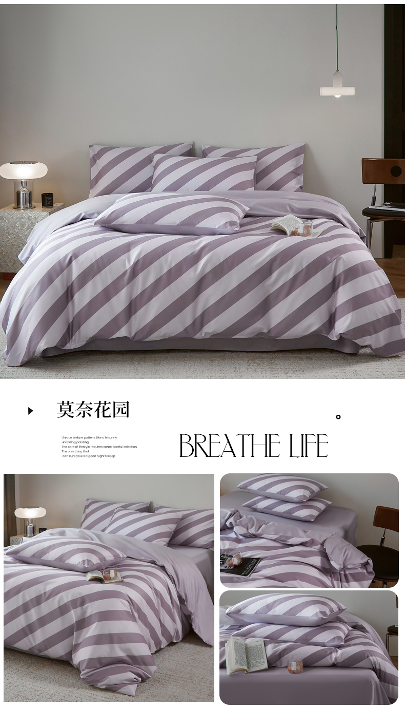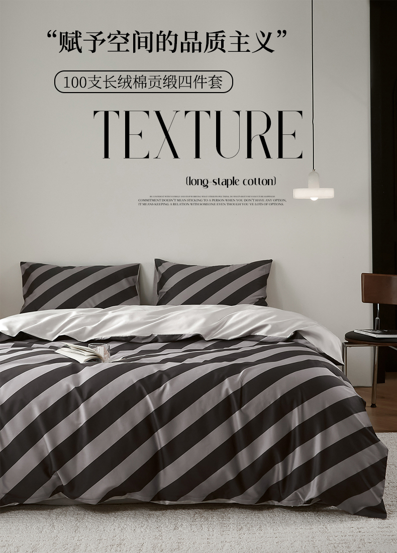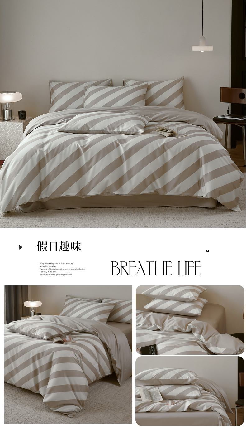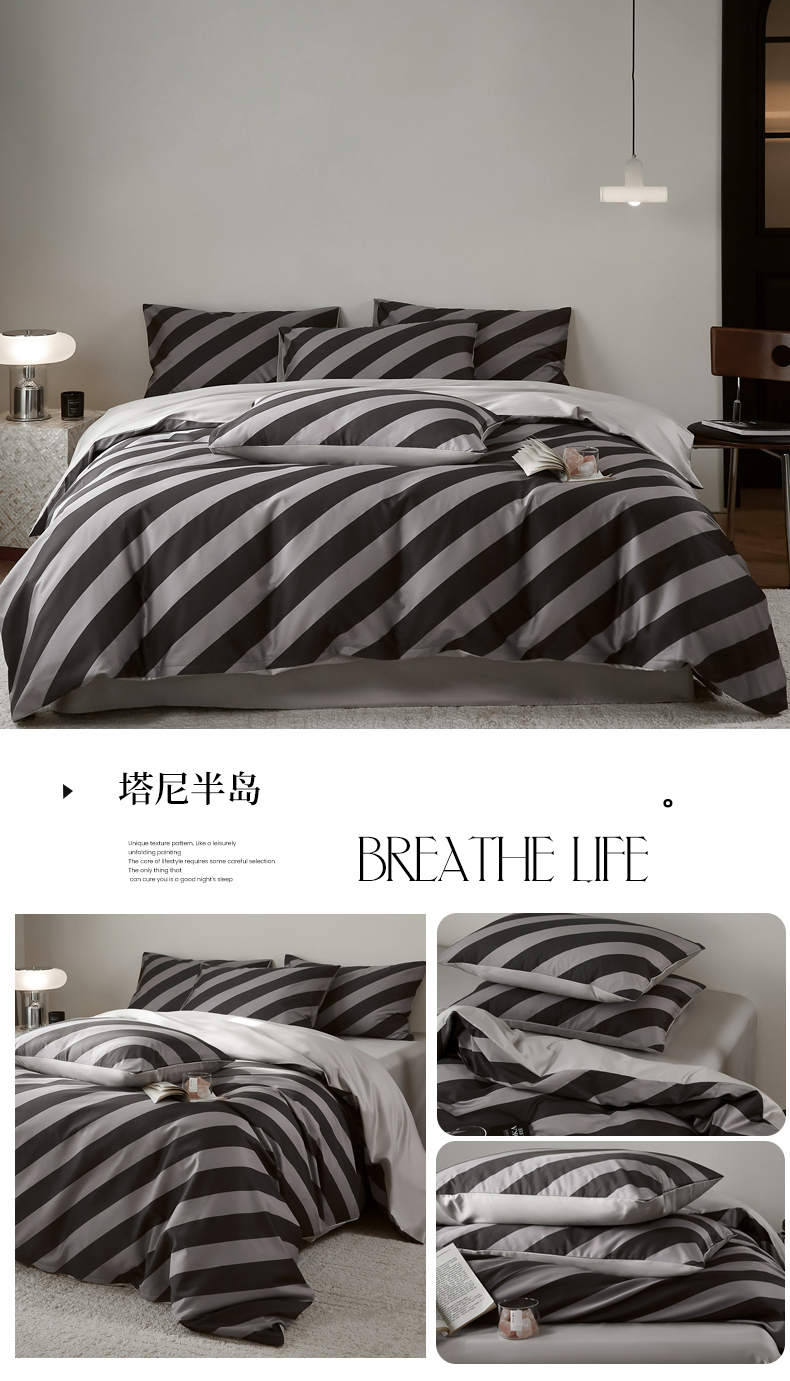 ONE TWO ONE 121 2025新款高支高密长绒棉纯棉贡缎宽缎条纹四件套-Say 晚安(标准不低于268元, 加大不低于 288元) 塔尼半岛