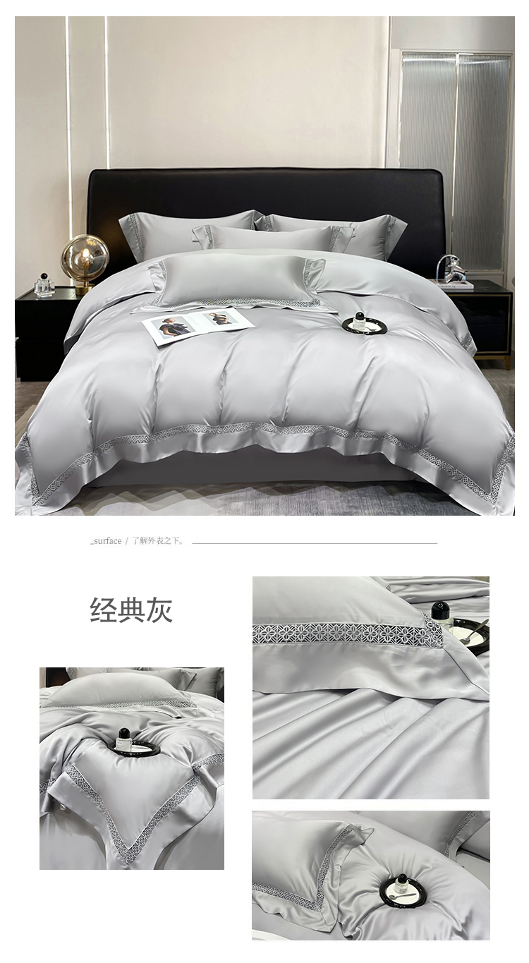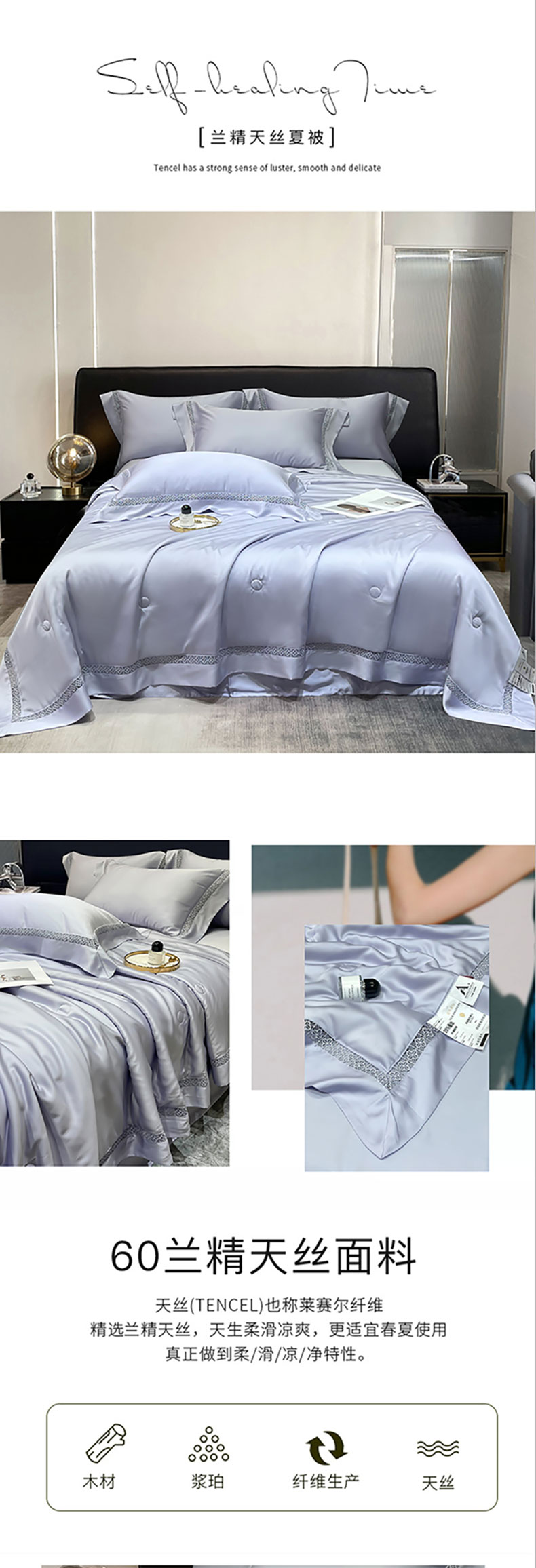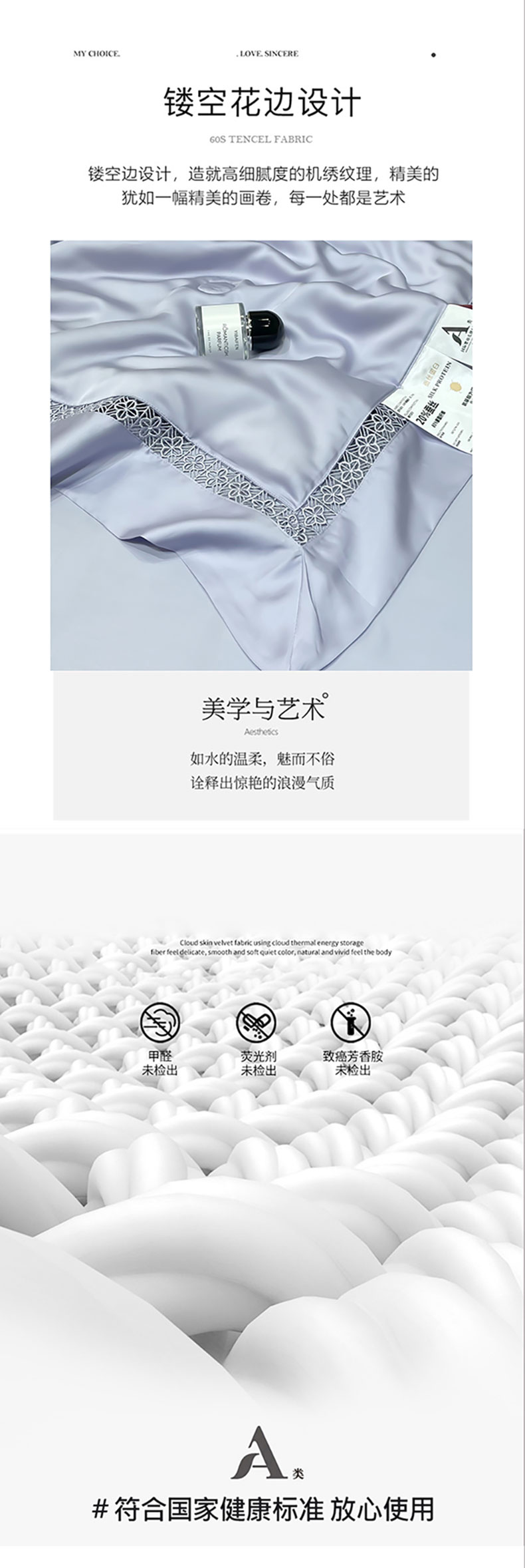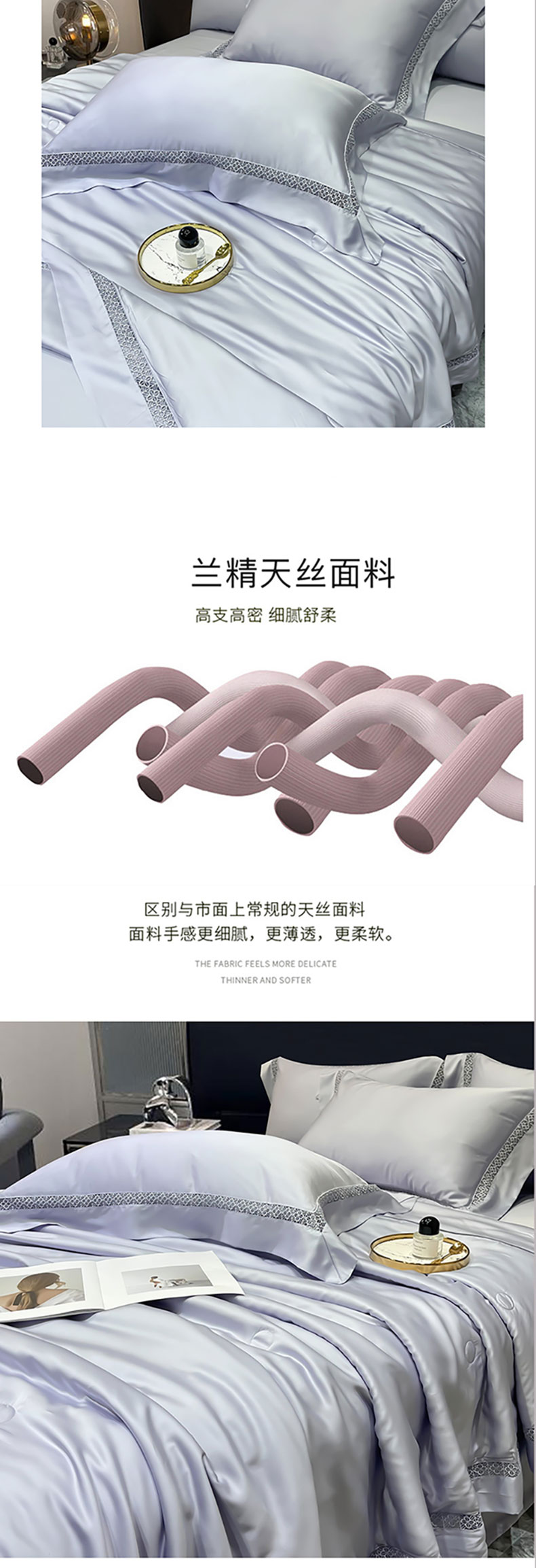 商品名称:洽想家 2025新款80支天丝镂空瑾系列夏被四件套 瑾-微紫