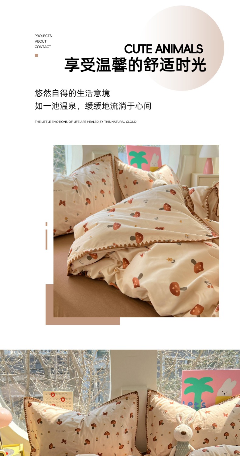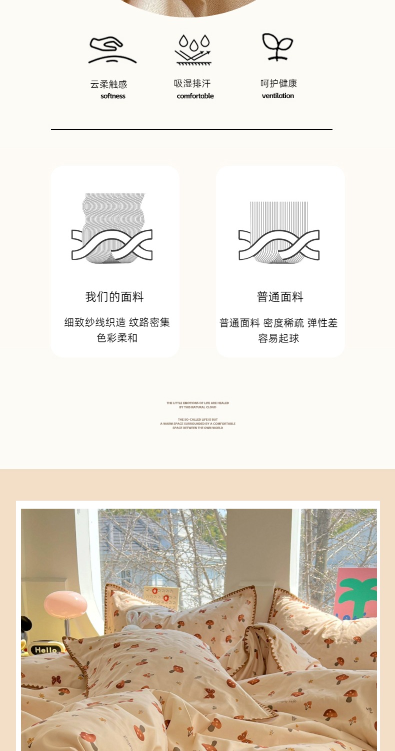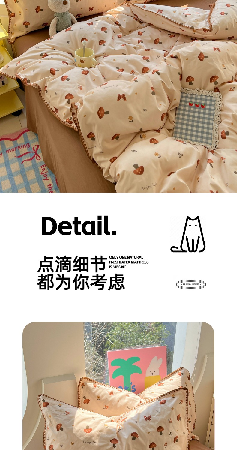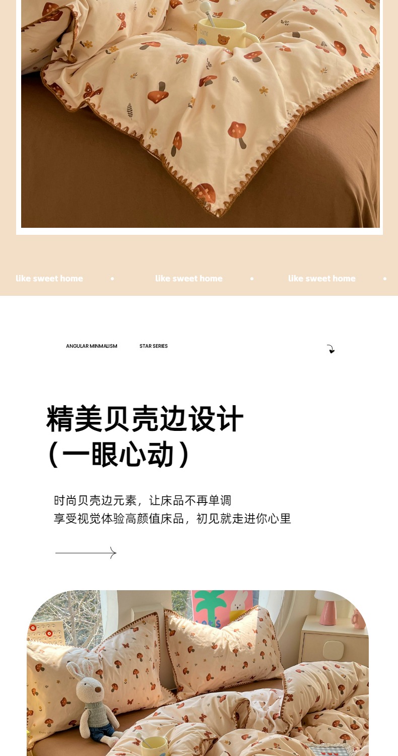 当前位置: 91家纺网 > 商品网购 > 床品套件 > 四件套 > 其它四件套 > 思诺羽床笠 2025新款亲肤棉贝壳花边四件套 贝壳边-小蘑菇