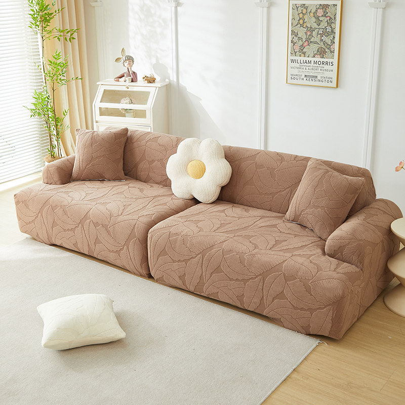 丝绮鹿 2025新款富贵叶系列-沙发套松紧款(组合沙发图) 米白