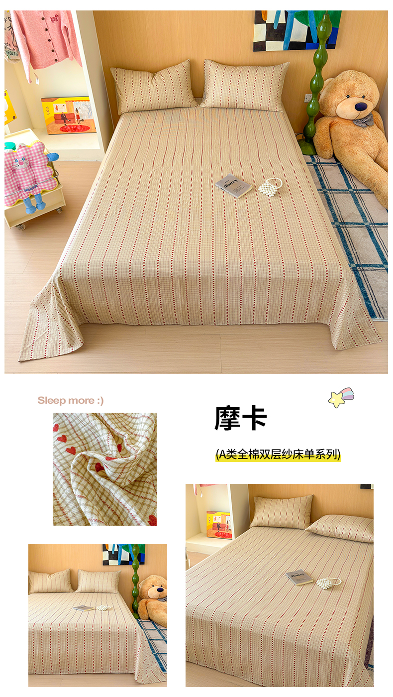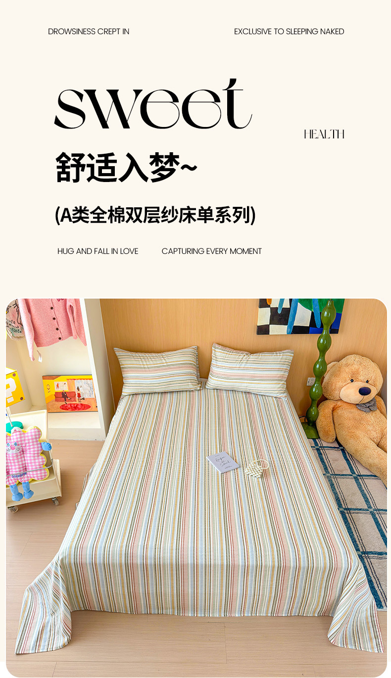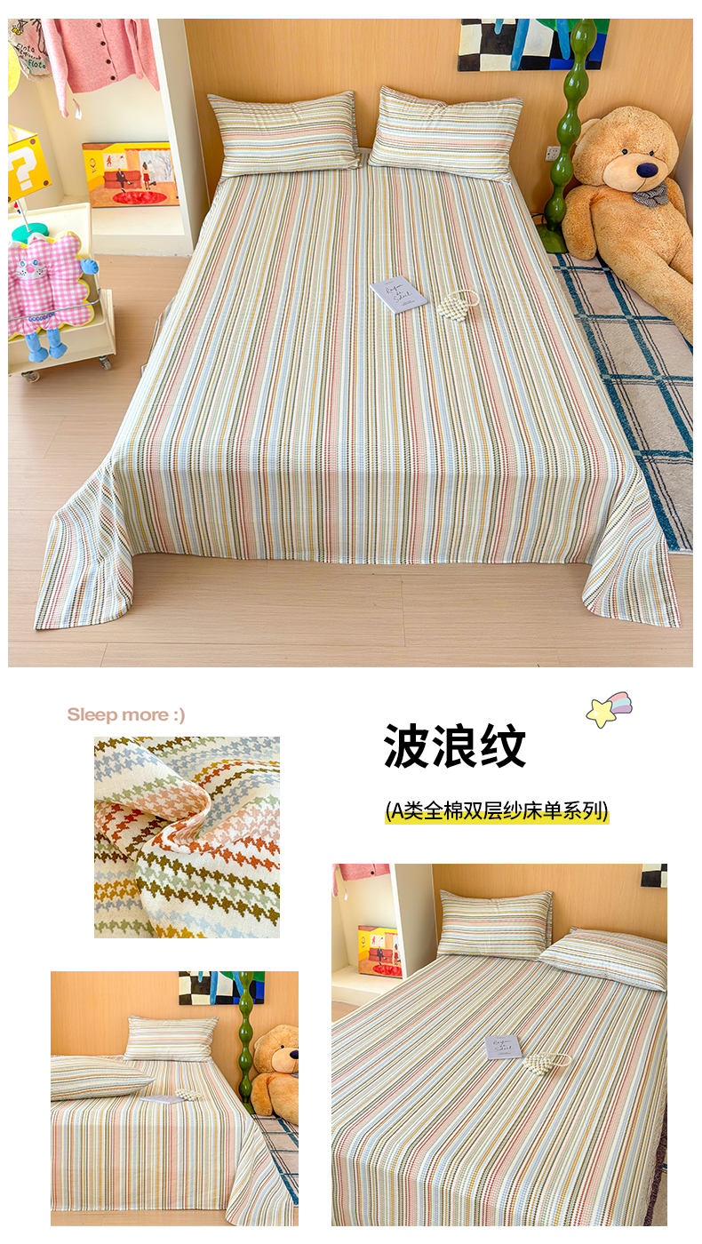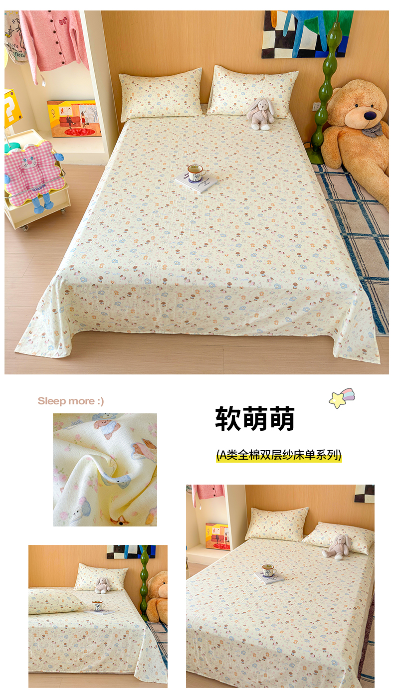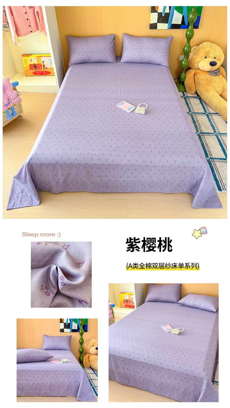 商品名称:(总)感遇家纺 2025新款全棉双层纱单品床单床笠枕套-单床单