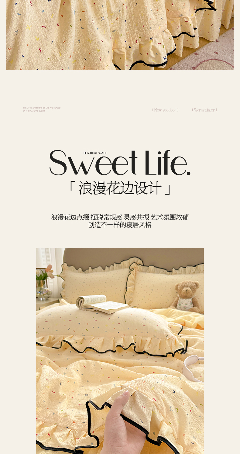 (总)大麦家纺2025新款年新款亲肤花边款床盖四件套 ,甜心小姐-梵星蓝,甜心小姐-落日橘,甜心小姐-奶昔白,甜心小姐-青提绿,甜心小姐-香槟玉,甜心小姐-香芋紫,甜心小姐-樱花粉