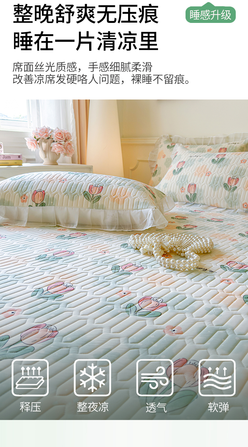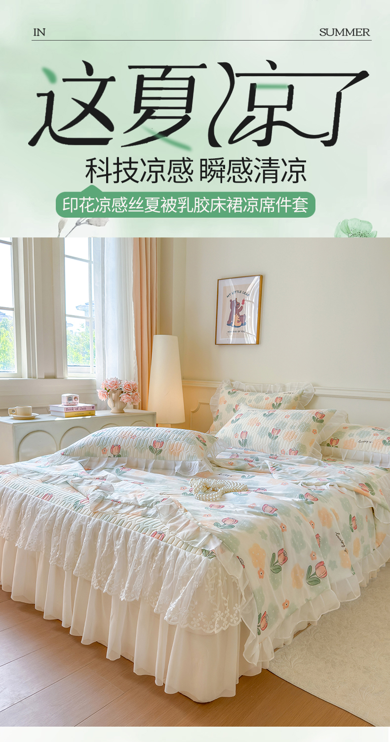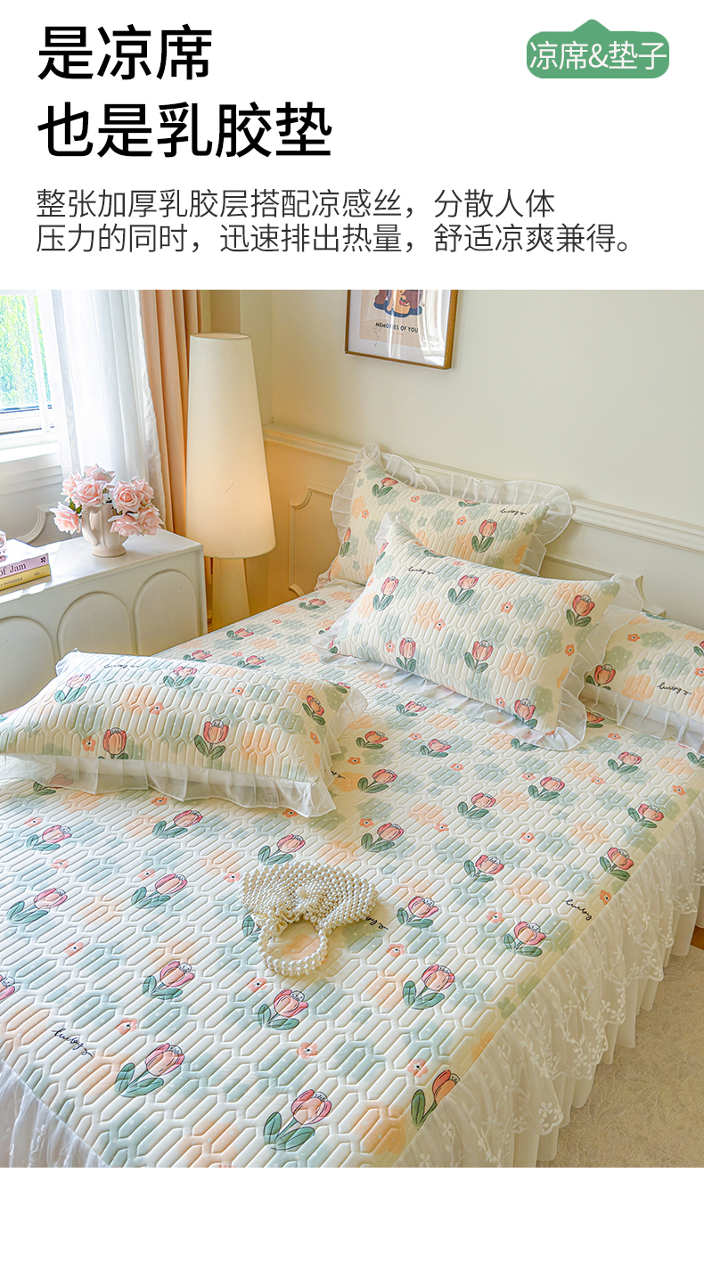 当前位置: 91家纺网 > 商品网购 > 床上用品 > 凉席 > 乳胶凉席 > 网红馆(ck家纺) 2025春夏新款印花凉感丝乳胶床裙凉席空调席夏被空调被 夏花 绿