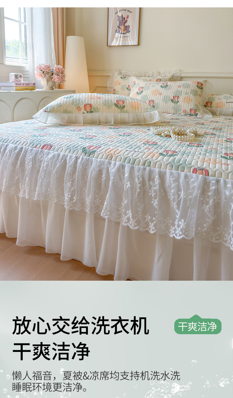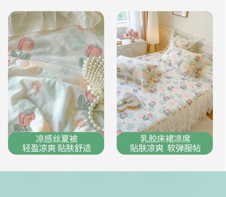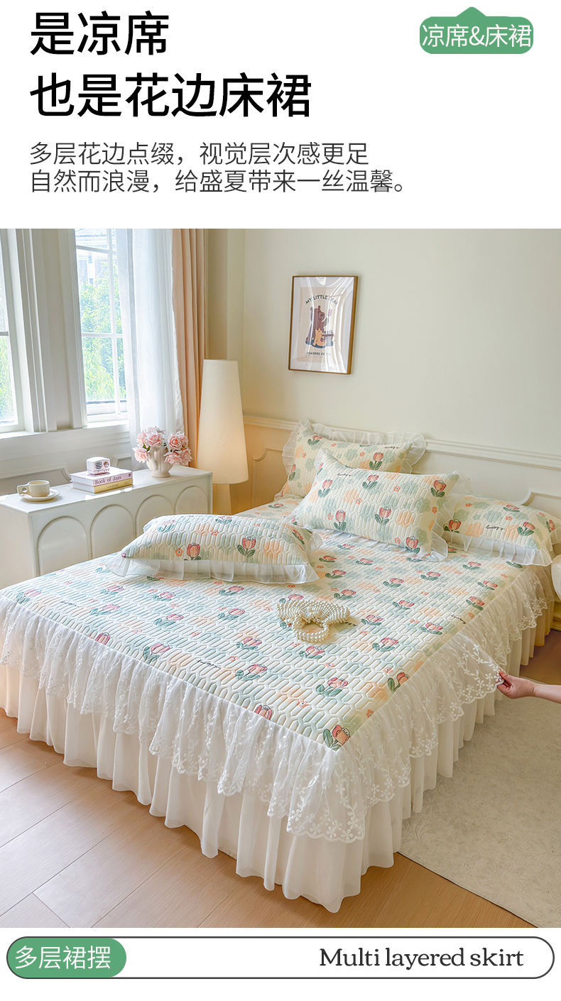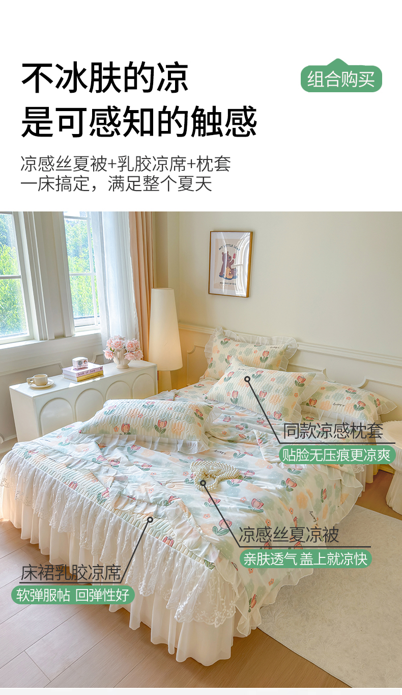 当前位置: 91家纺网 > 商品网购 > 床上用品 > 凉席 > 乳胶凉席 > 网红馆(ck家纺) 2025春夏新款印花凉感丝乳胶床裙凉席空调席夏被空调被 夏花 绿