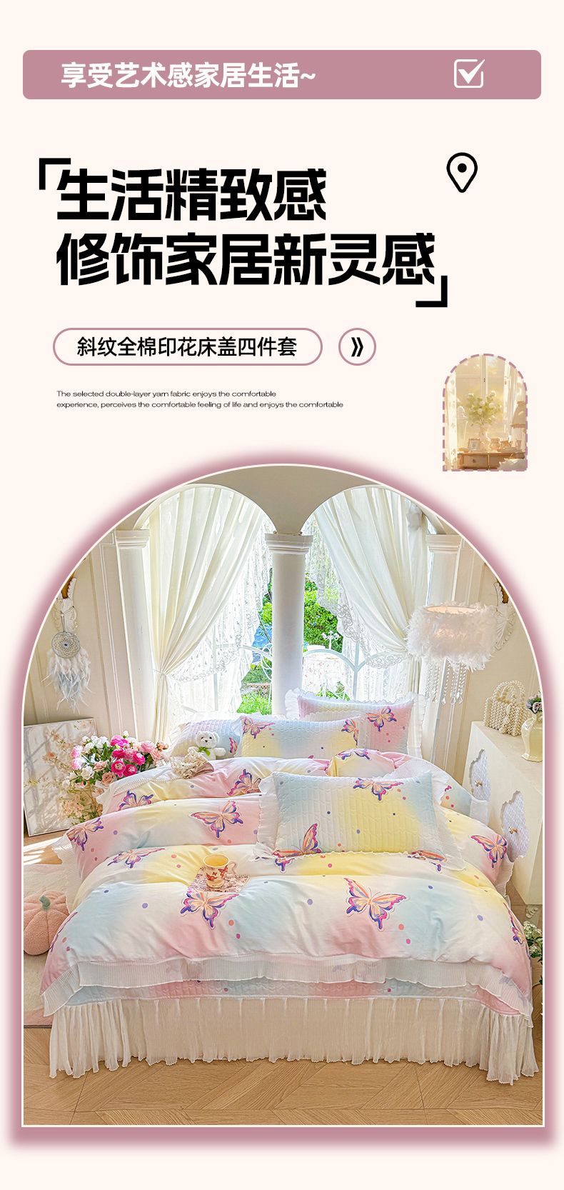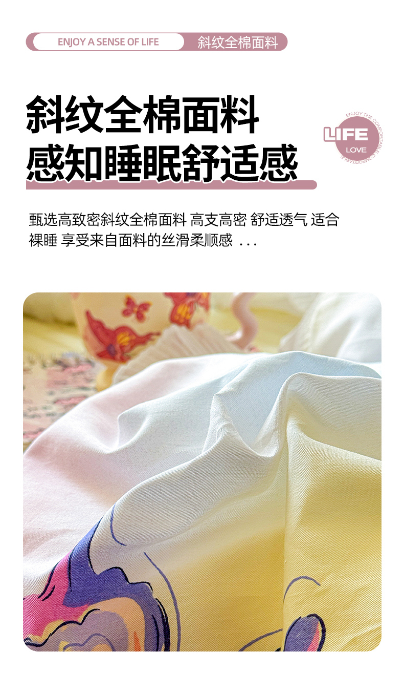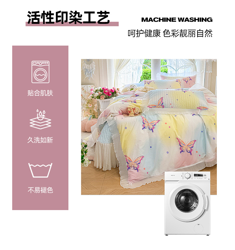 商品名称:虹星家纺 2025新款斜纹全棉纯棉印花床盖四件套-清甜 清甜-蝴蝶纷飞