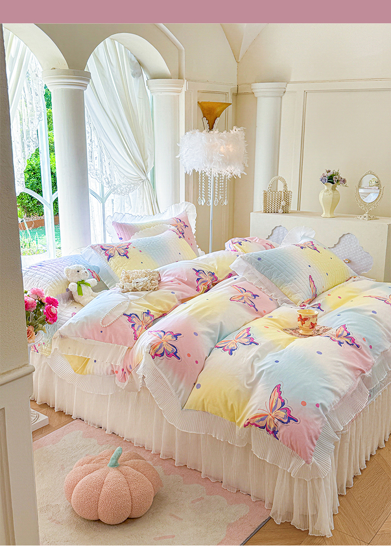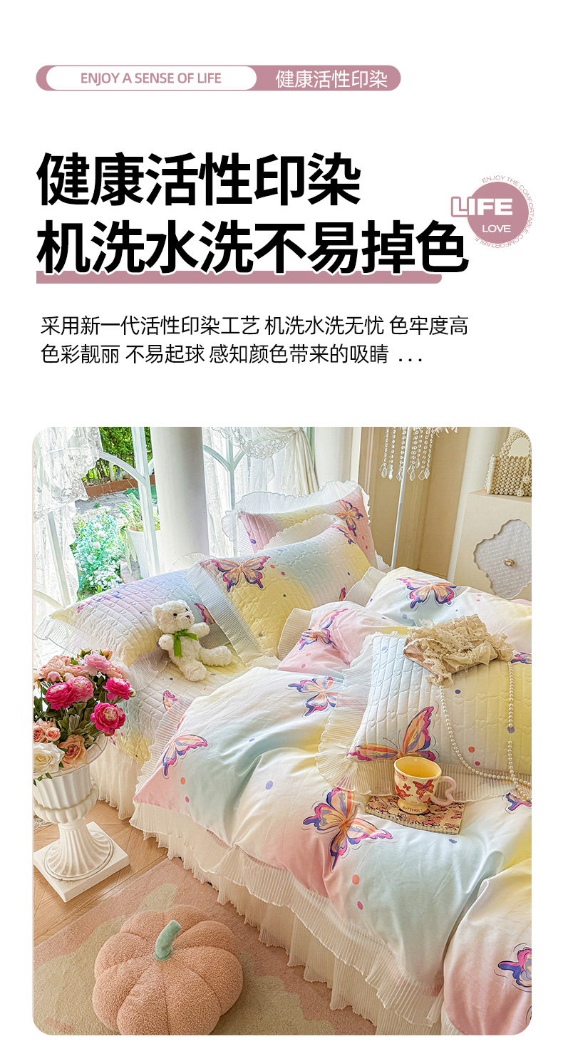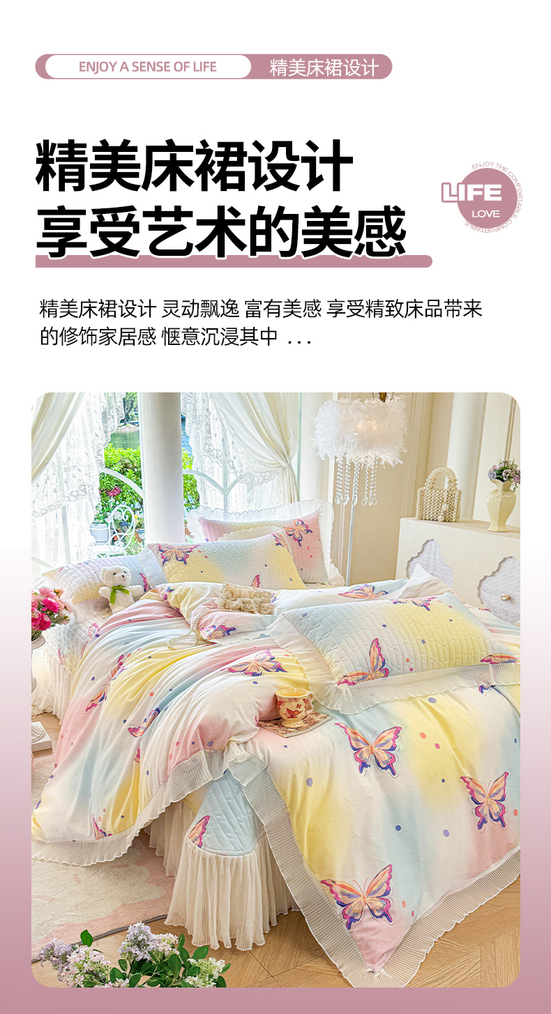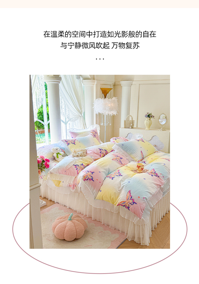 (总)虹星家纺 2025新款花边牛奶绒床裙四件套系列,蝶恋-粉玉,蝶恋-抹茶绿,蝶恋-奶茶色,蝶恋-葡萄紫,蝶恋-天空蓝
