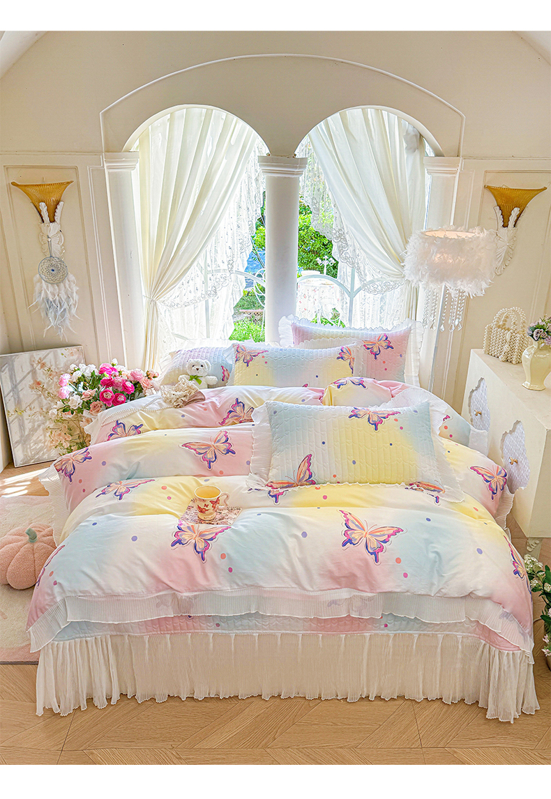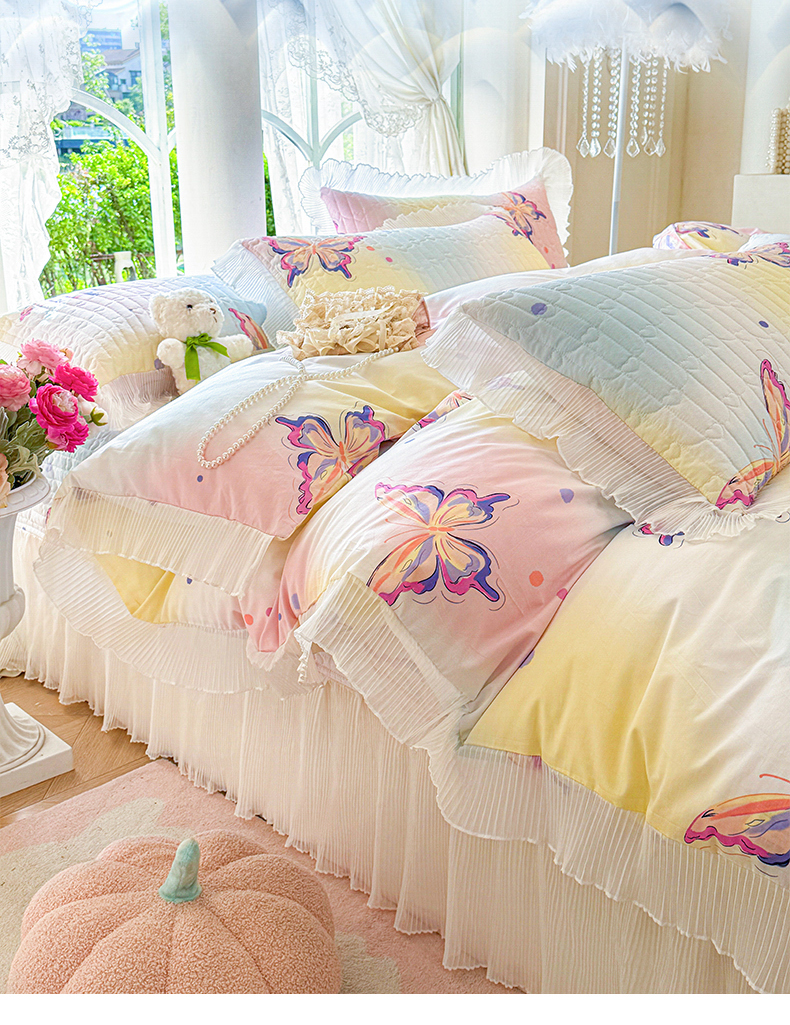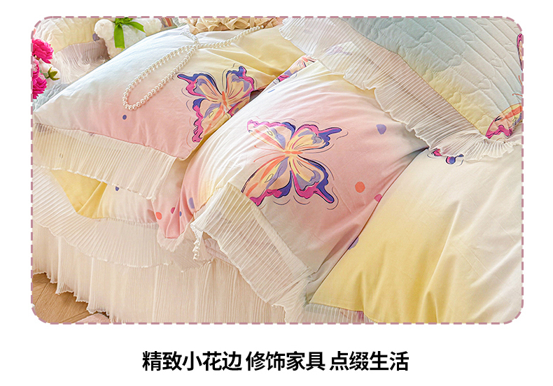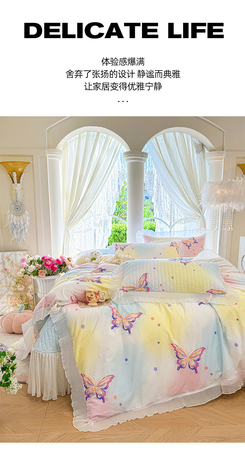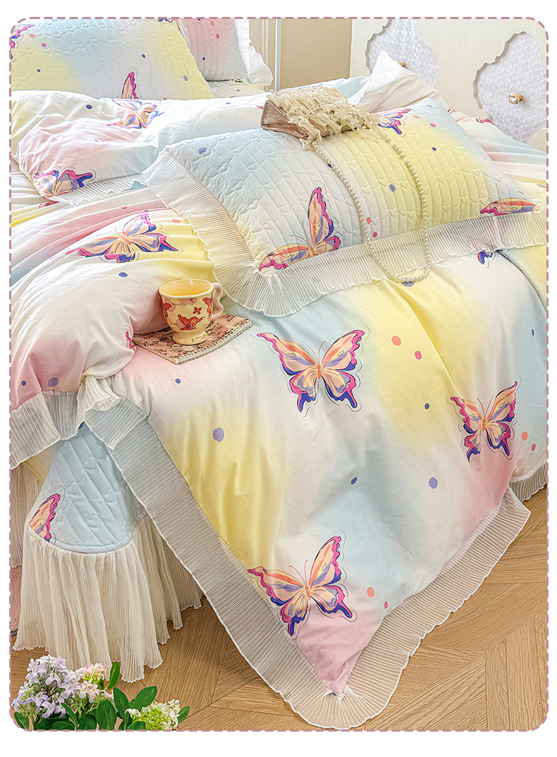 虹星家纺 2025新款斜纹全棉纯棉印花床盖四件套-清甜 清甜-蝴蝶纷飞