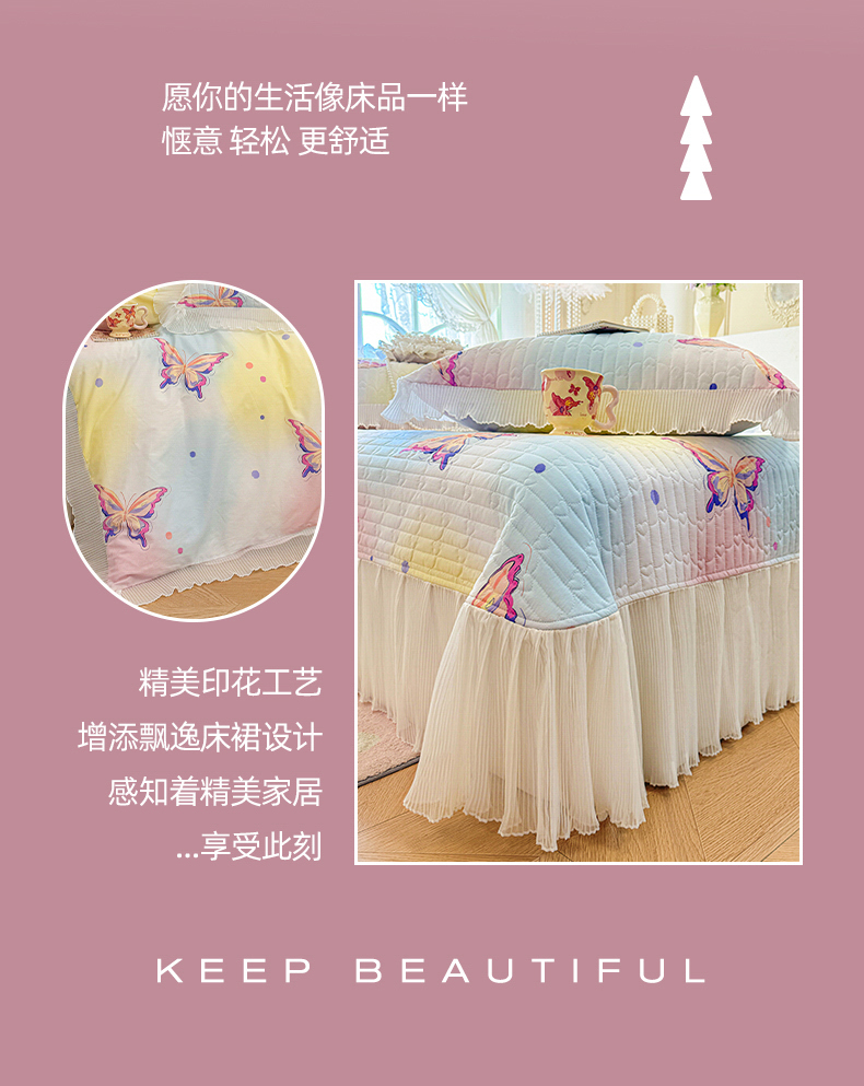 (总)虹星家纺 2025新款花边牛奶绒床裙三件套系列,蝶恋-粉玉,蝶恋-抹茶绿,蝶恋-奶茶色,蝶恋-葡萄紫,蝶恋-天空蓝