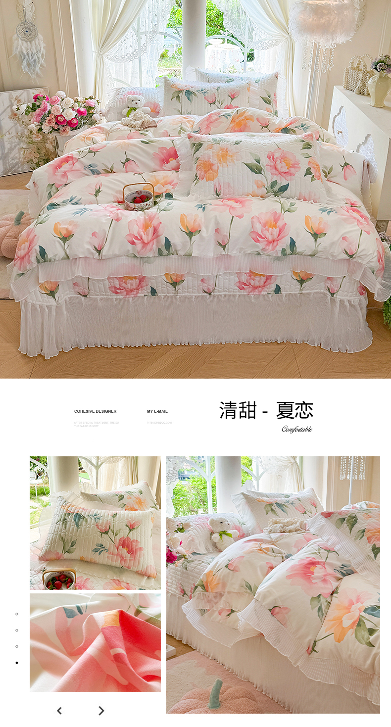 (总)虹星家纺 2025年新款全棉床盖四件套-花影倾梦,花影倾梦-浅米色,花影倾梦-薄荷绿,花影倾梦-天空蓝,花影倾梦-樱花粉,花影倾梦-优雅紫,花影倾梦-云朵白