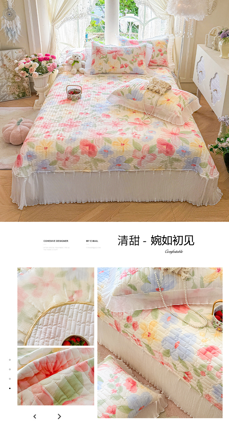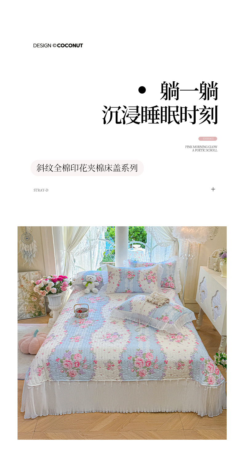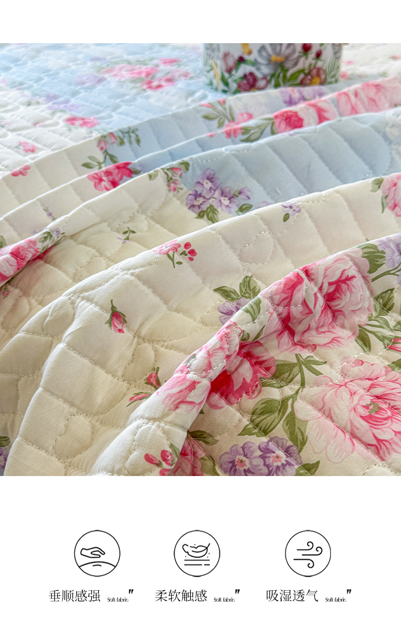 (总)虹星家纺 2025年新款全棉床盖三件套-花影倾梦,花影倾梦-浅米色,花影倾梦-薄荷绿,花影倾梦-天空蓝,花影倾梦-樱花粉,花影倾梦-优雅紫,花影倾梦-云朵白
